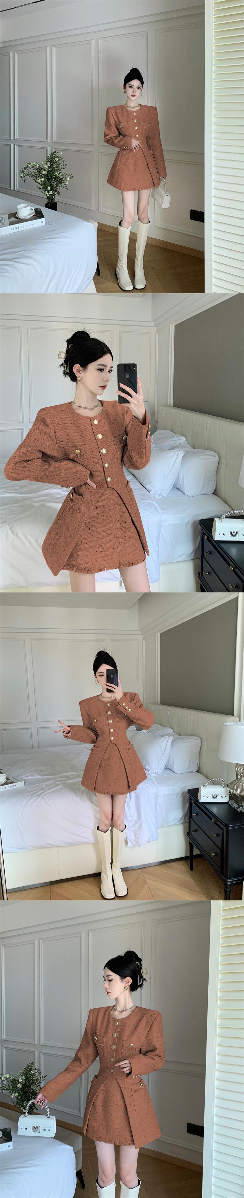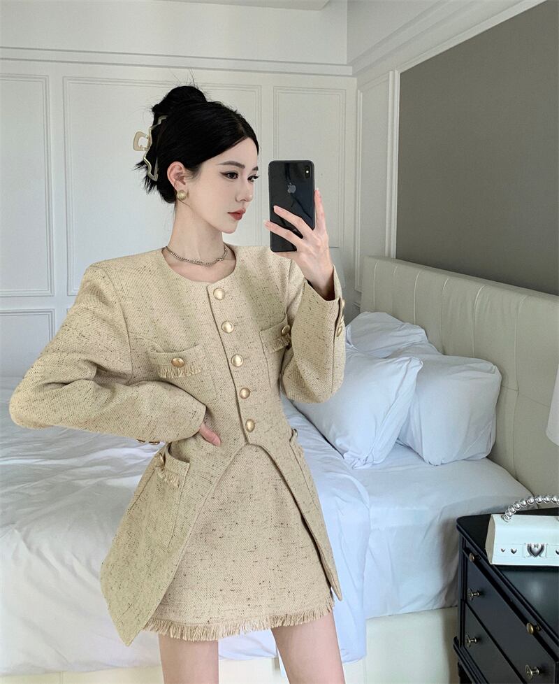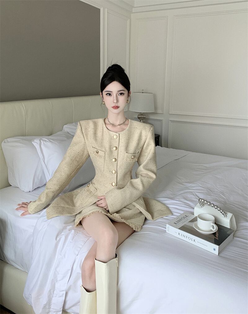 ストリートフレンチスモールフレグランスツーピースセット長袖コート+ウエストテルスカート2点衣装 ロング