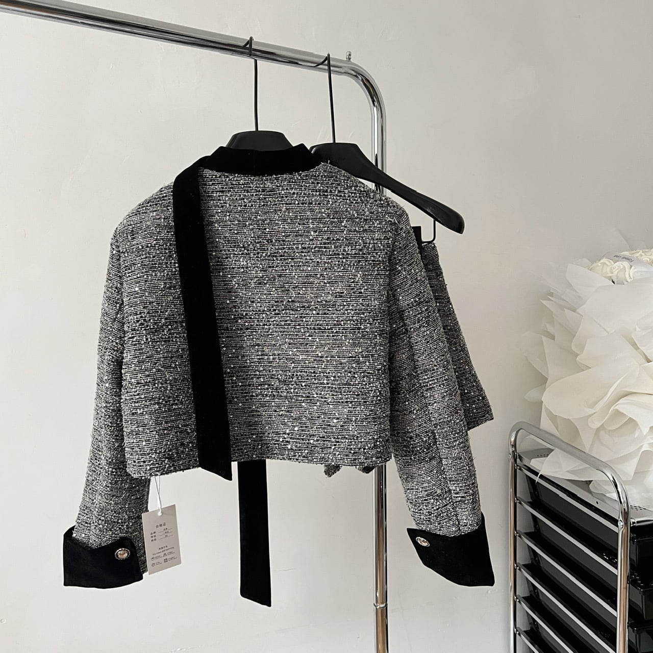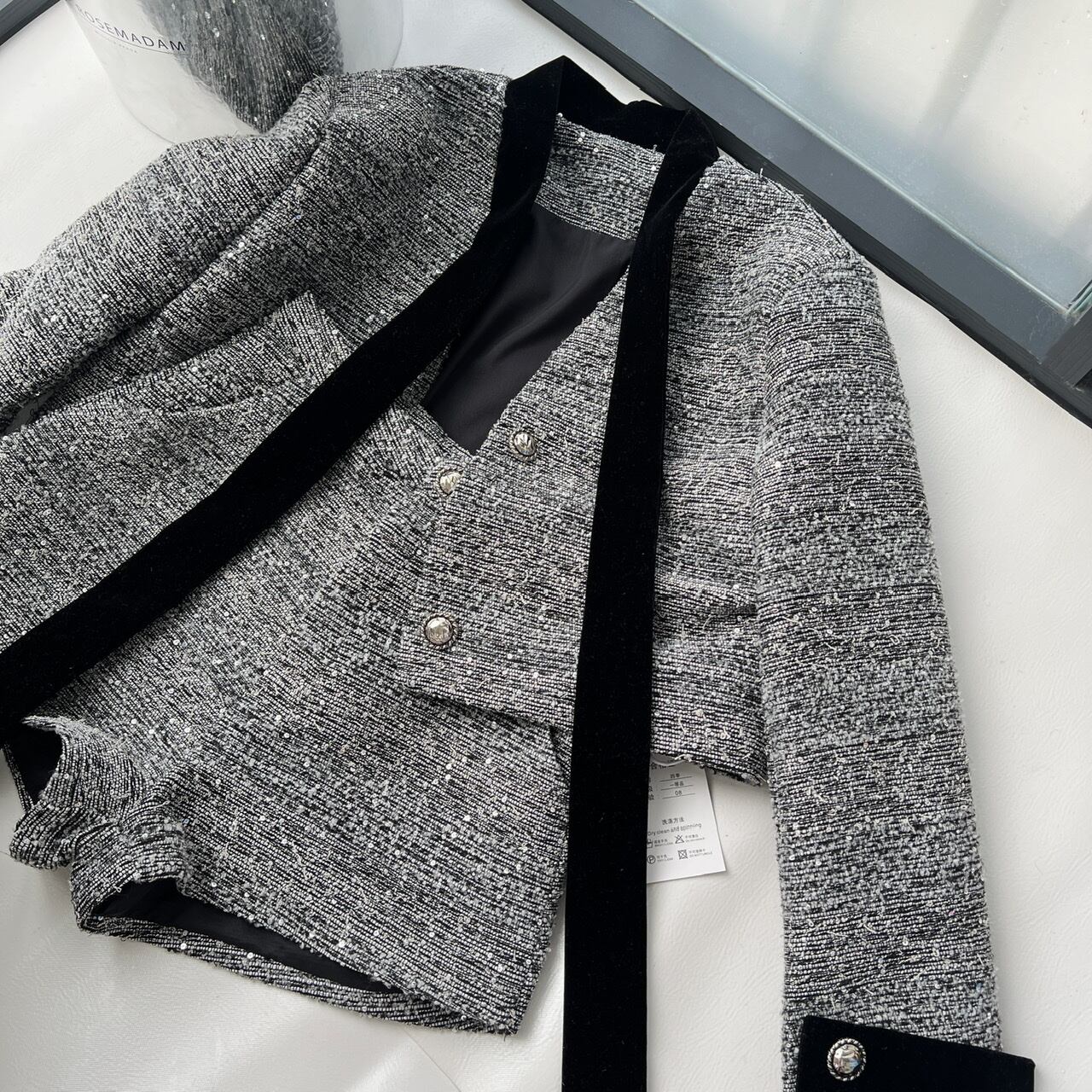 フランス小さ香りウールツーピースパンツセット秋 Y2K ストリートショートツイードジャケットコート + ショートセット