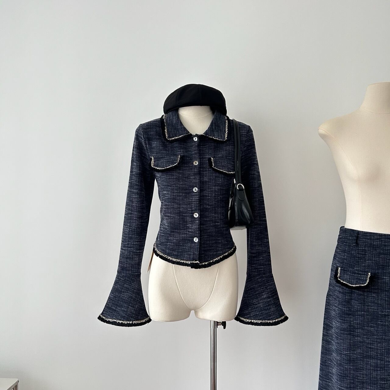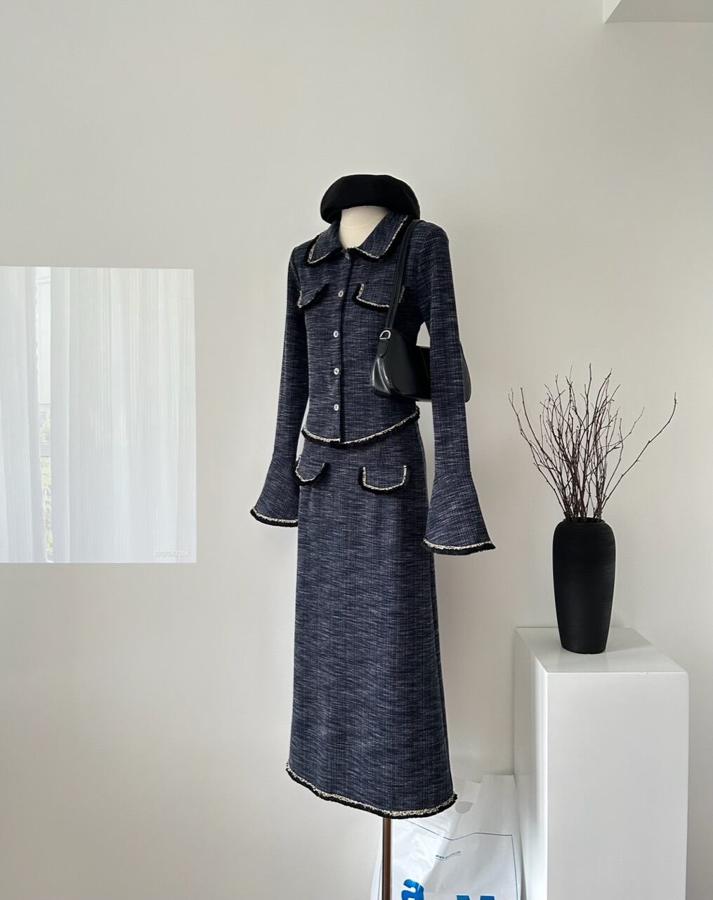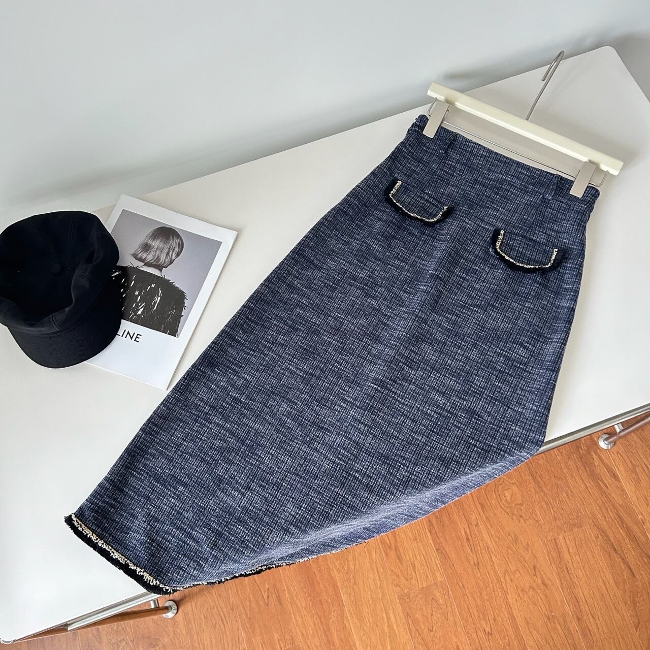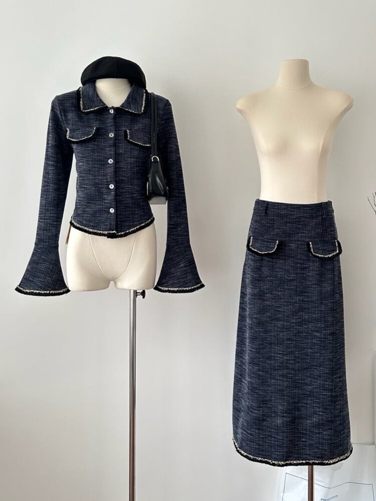 フレンチスモールフレグランスツーピースセット長袖トップ+ロングスカートスーツ秋2ピース衣装