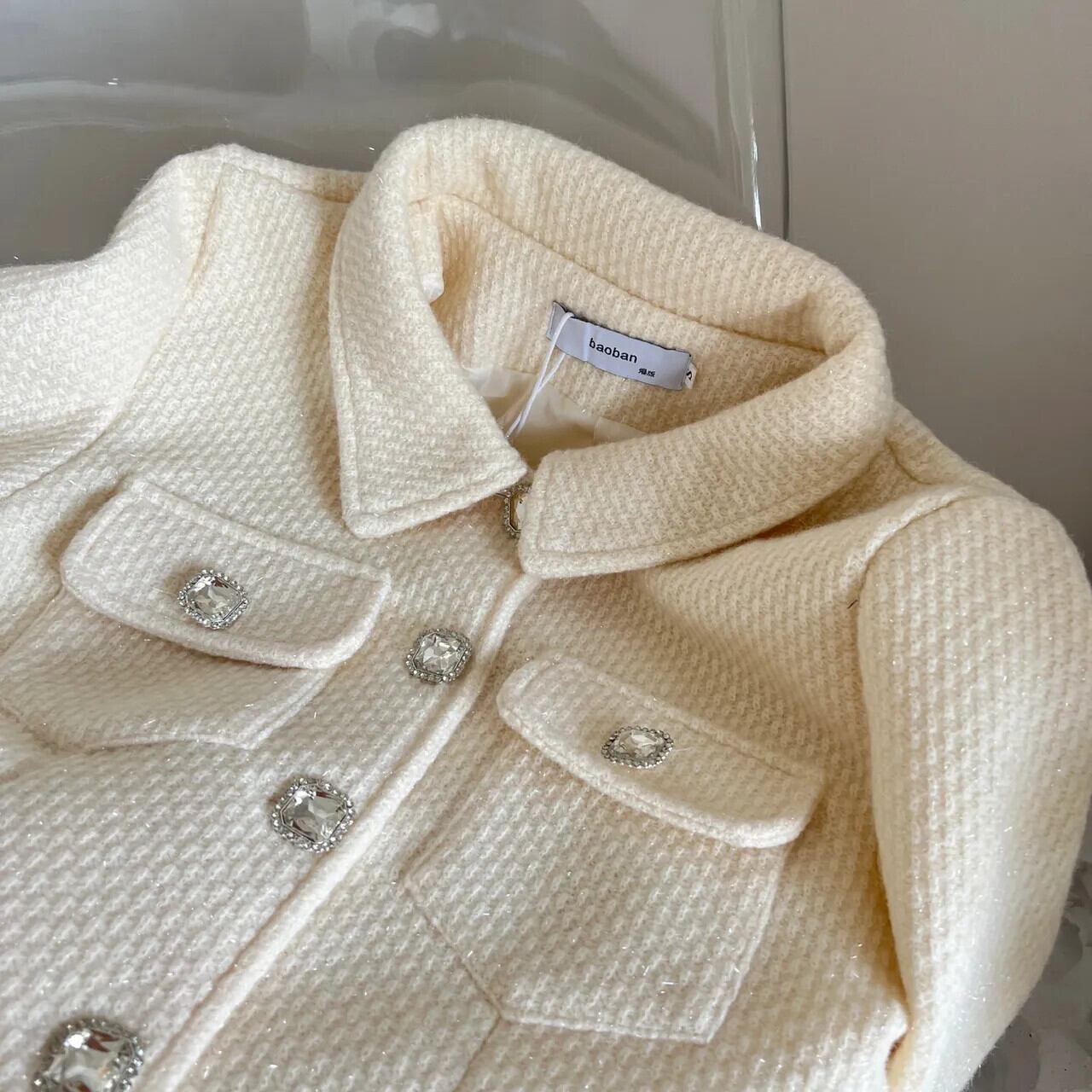 フランス小さフレグランスツイード 2 点セット高級ダイヤモンドボタンジャケットコート + スカート 2 ピース衣装