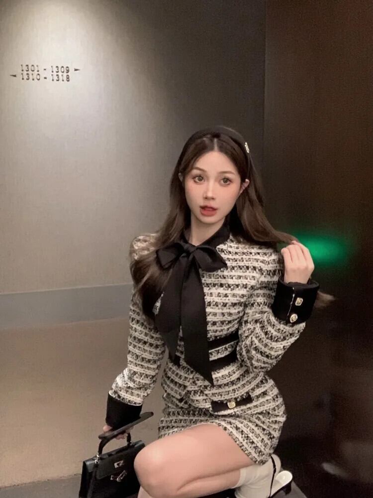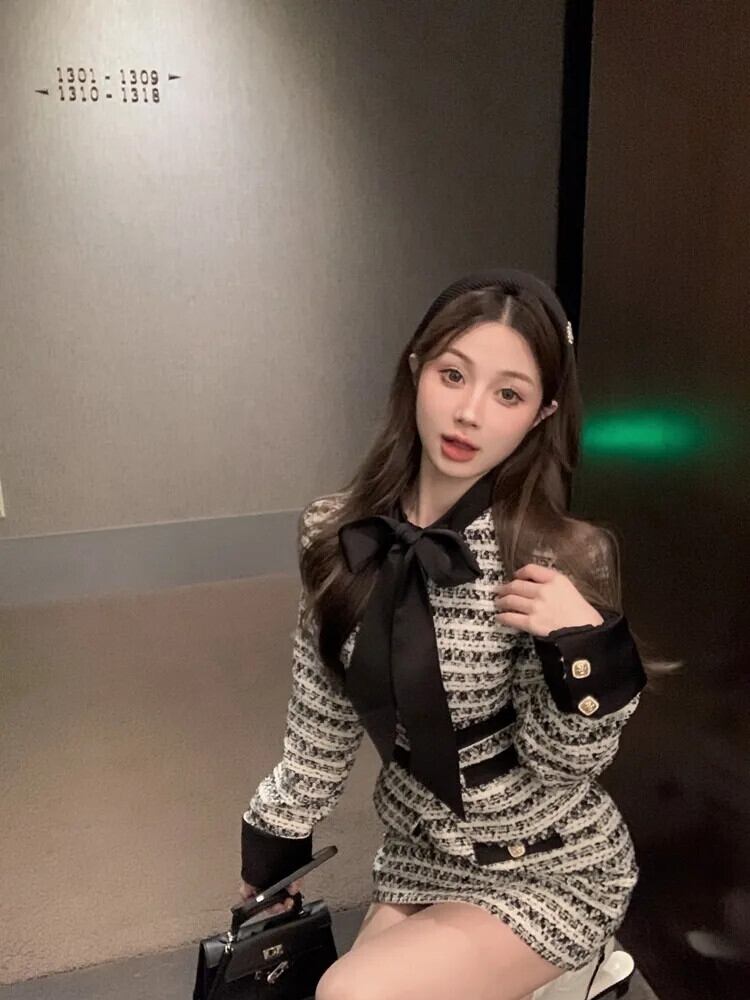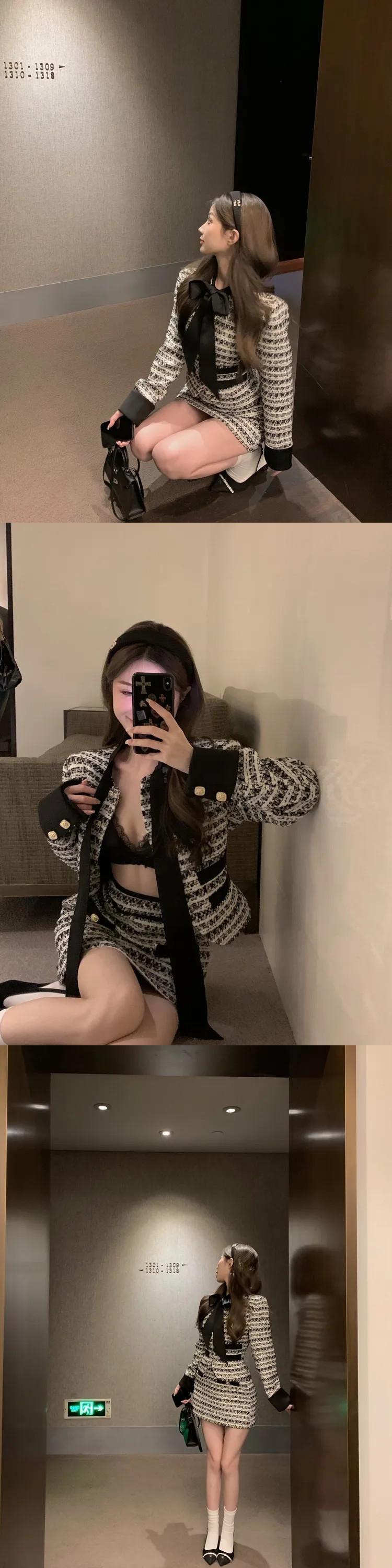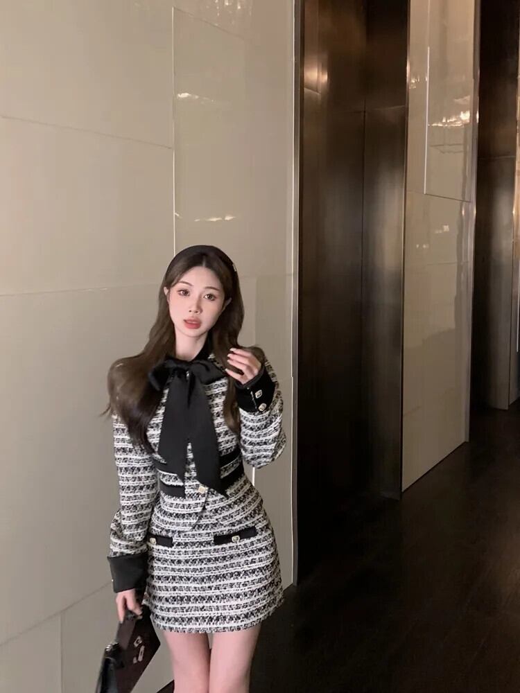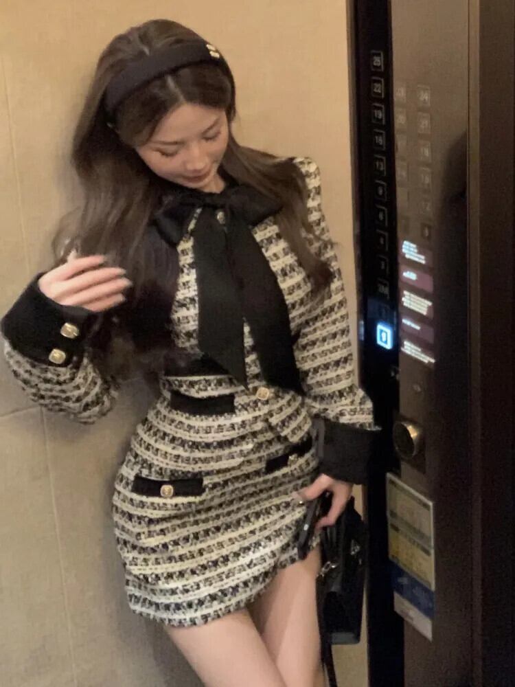 ツイード 2 点セットショートジャケットコート + スカートスーツ秋冬フレンチスモールフレグランス 2 点セット オータム 秋物 ウィンター 冬物