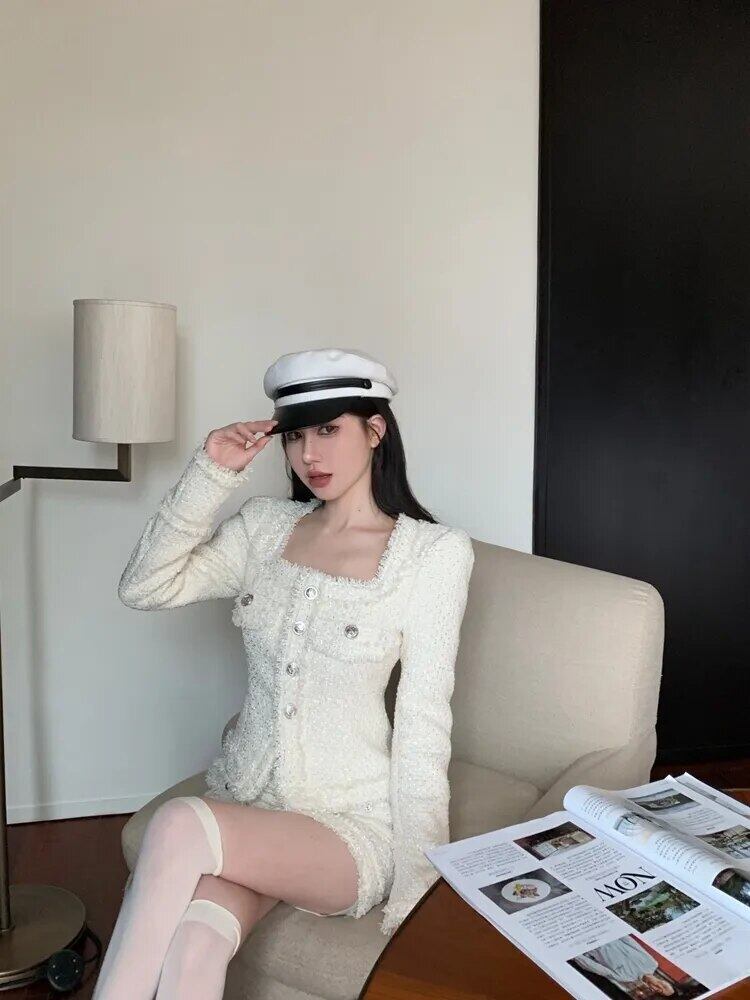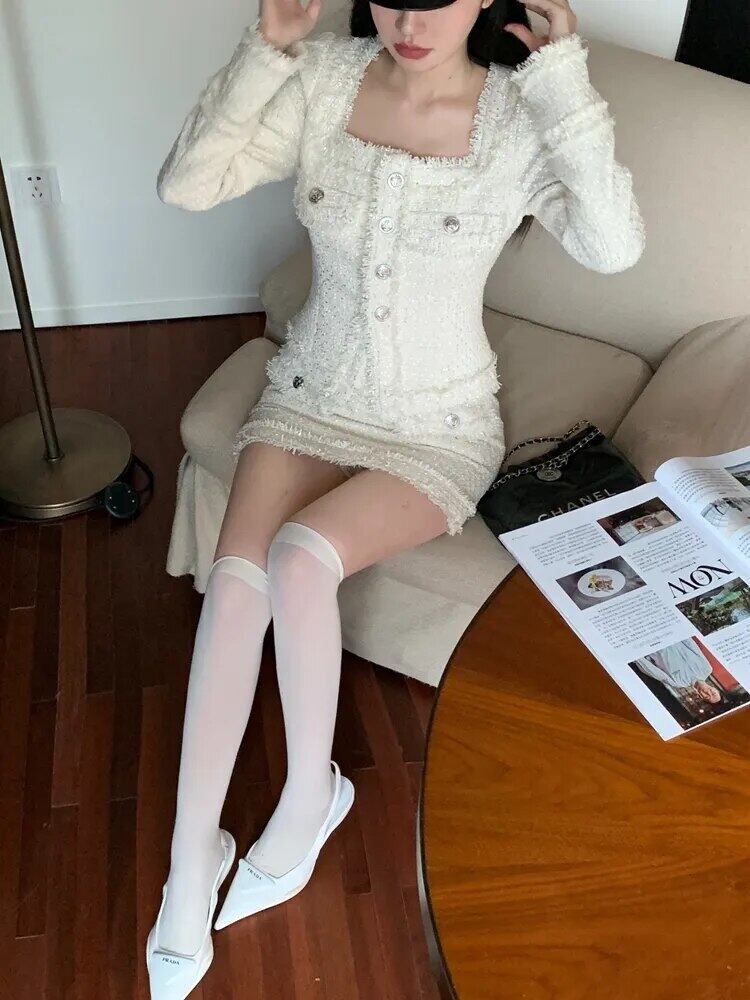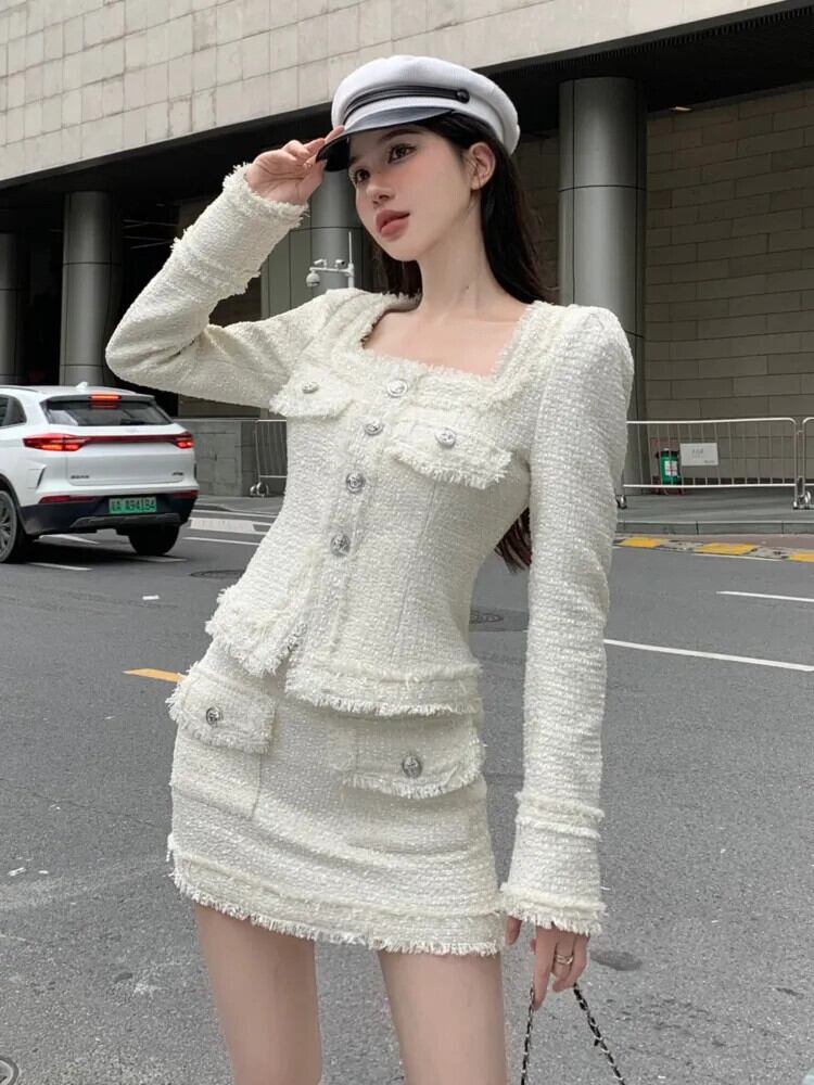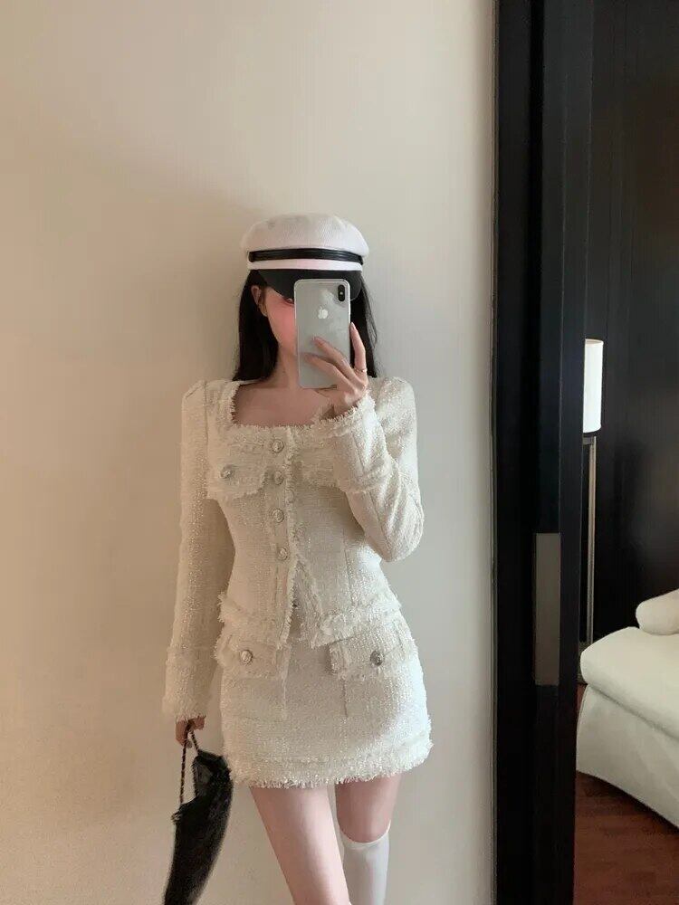 フランス高級小さ香りツイード 2 点セット秋冬ウールジャケットコート + スカート 2 ピーススーツ ウィンター 冬物