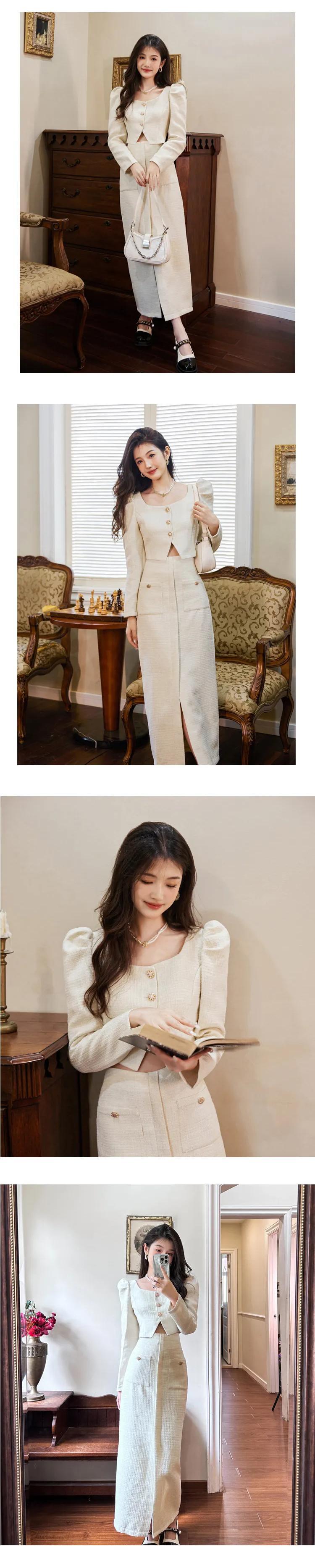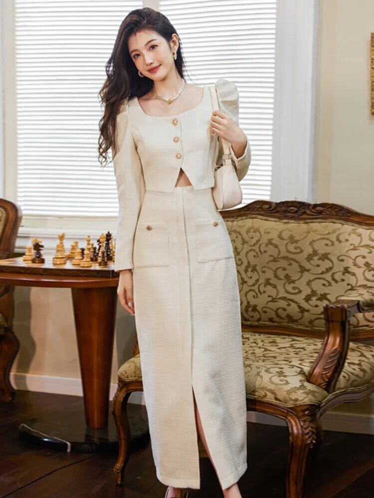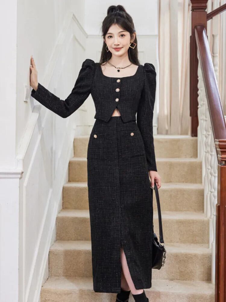 ストリートフレンチスモールフレグランスツーピースセット秋冬ショートジャケットコート+ロングスカート2ピーススーツ オータム 秋物 ウィンター 冬物