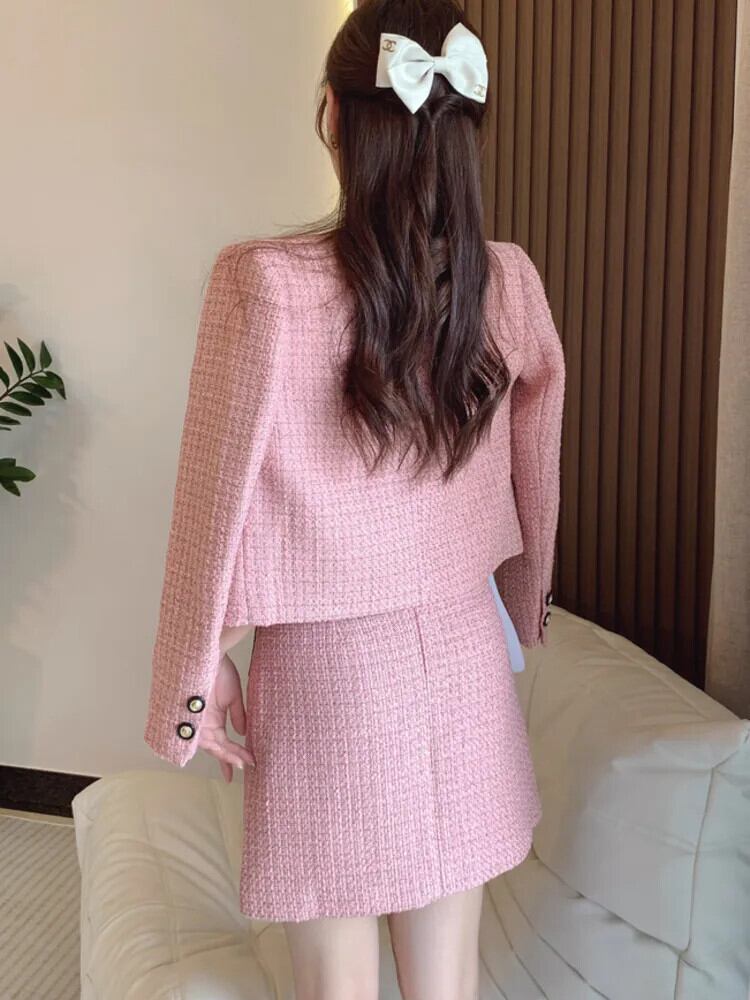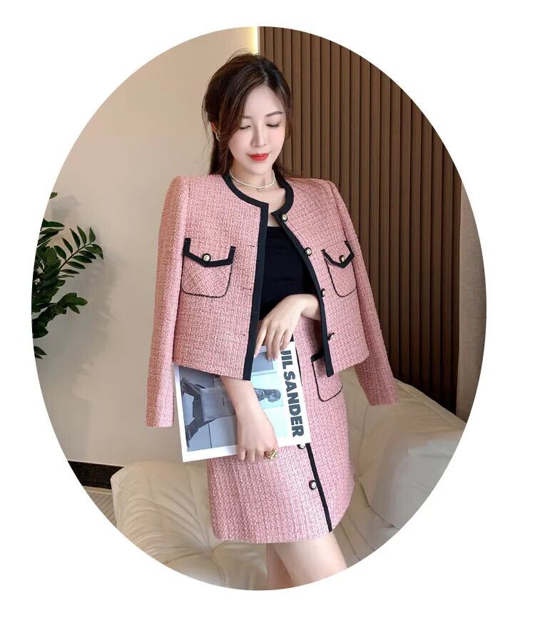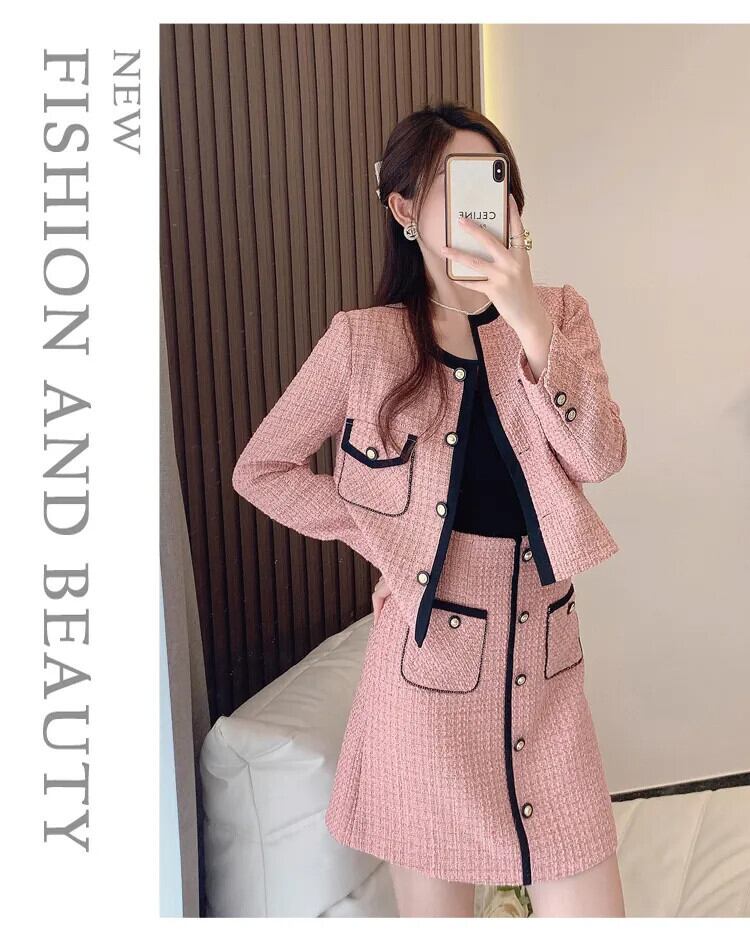 フレンチツイード 2 点セットジャケットコート + スカートスーツ Gilrs 甘い 2 点セット衣装 大人ガーリー スウィート キュート カジュアル
