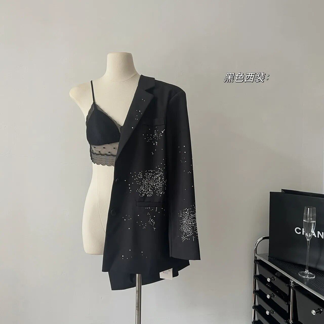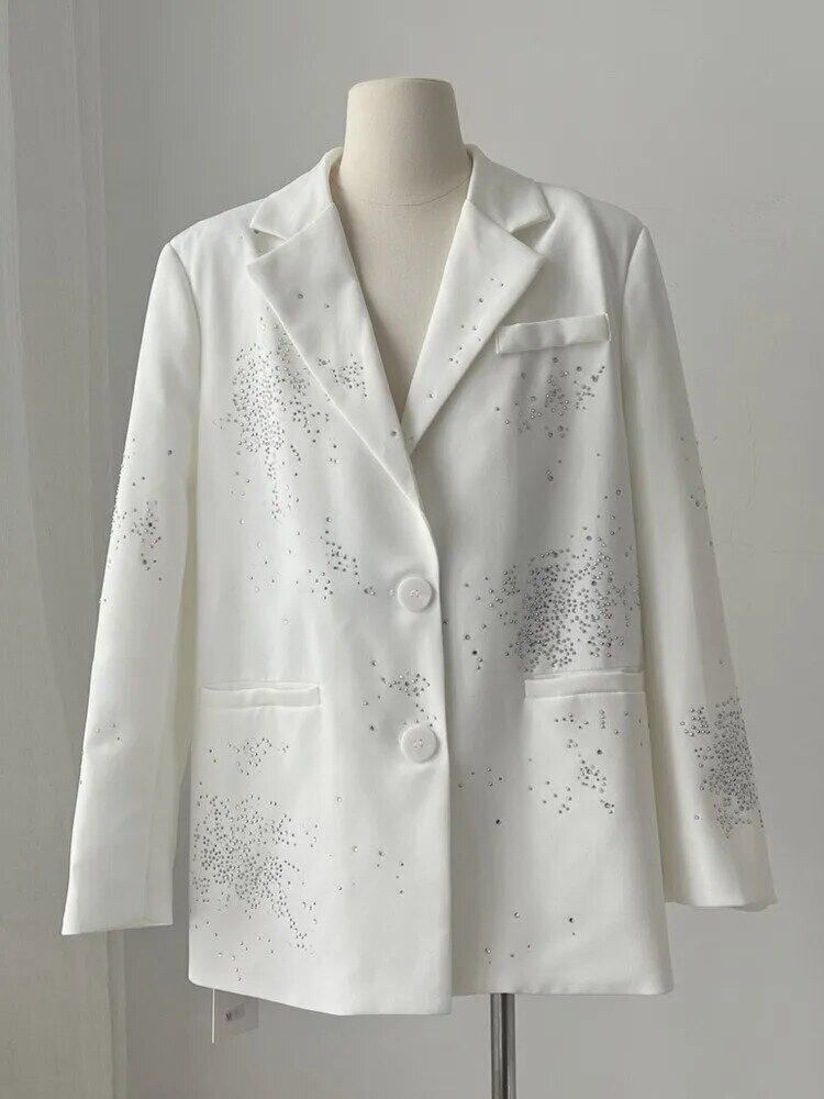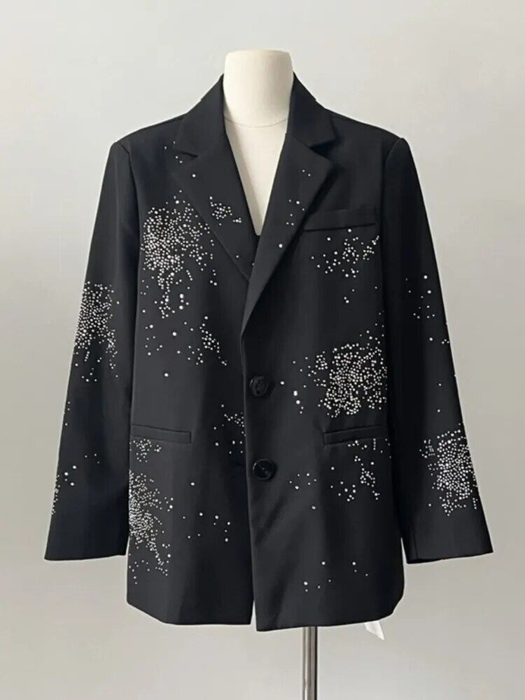 秋フランス高級ホットフィックスダイヤモンドルースブレザーコートスーツアウター Casaco Feminino オータム 秋物