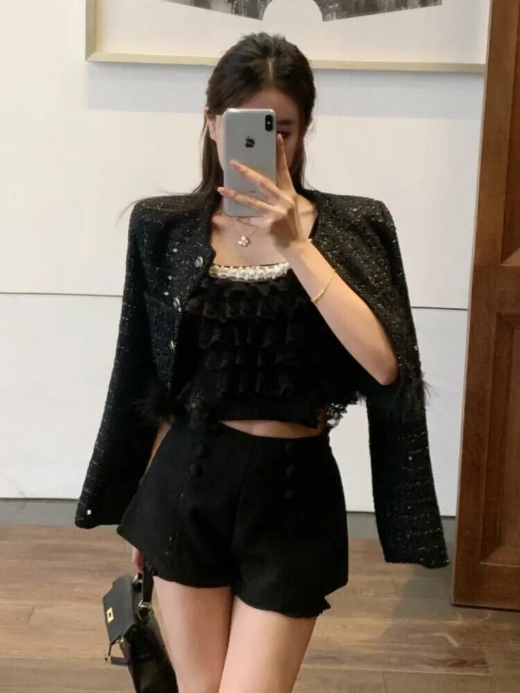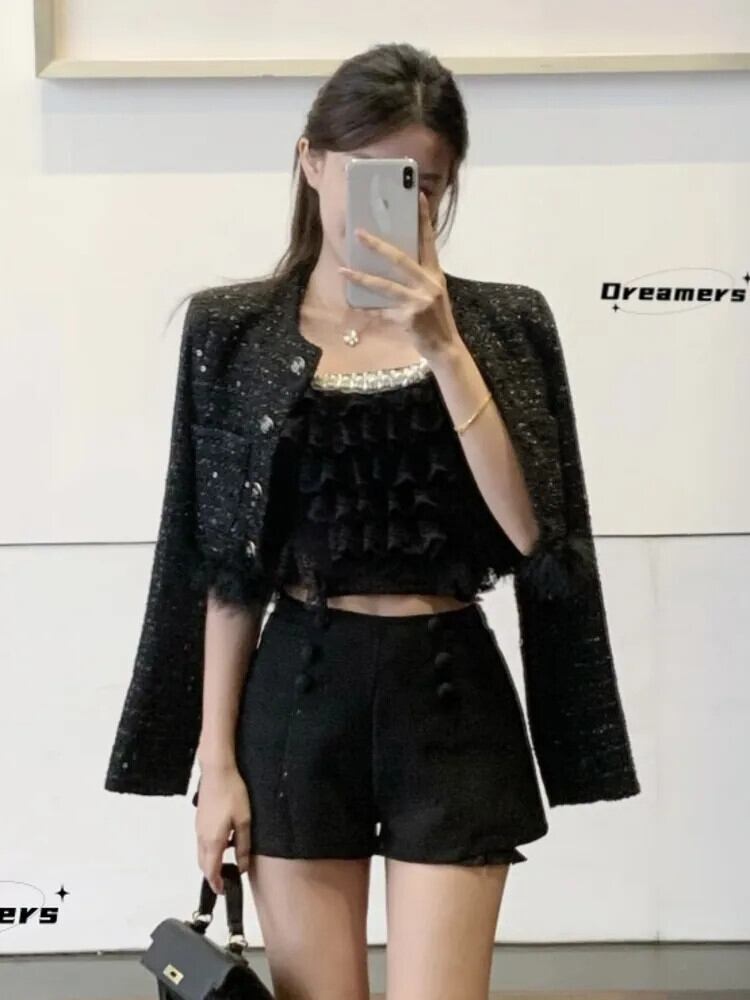高級スモールフレグランスツイード2点セットウールジャケットコート+ショートセットツーピースパンツスーツ