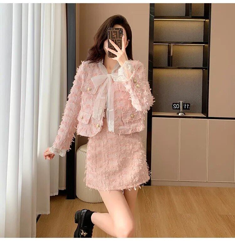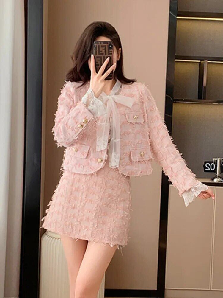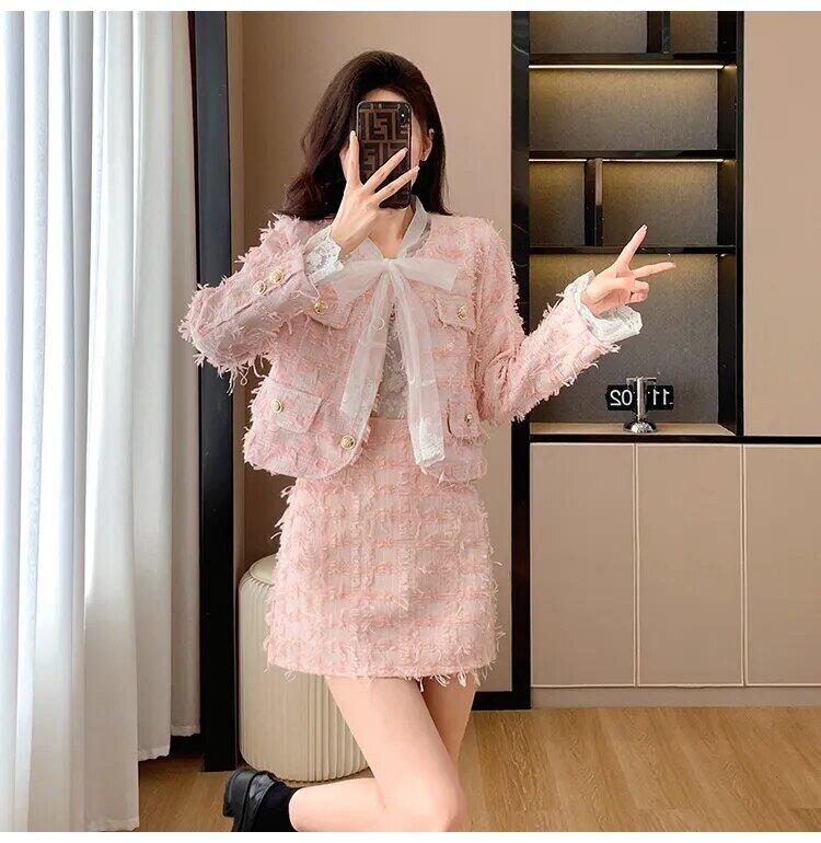 秋ストリートテルスカートセット小さフレグランスツイードツーピースセットconjuntos cortos 2ピースセット衣装 オータム 秋物