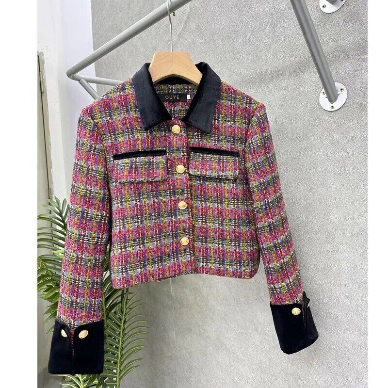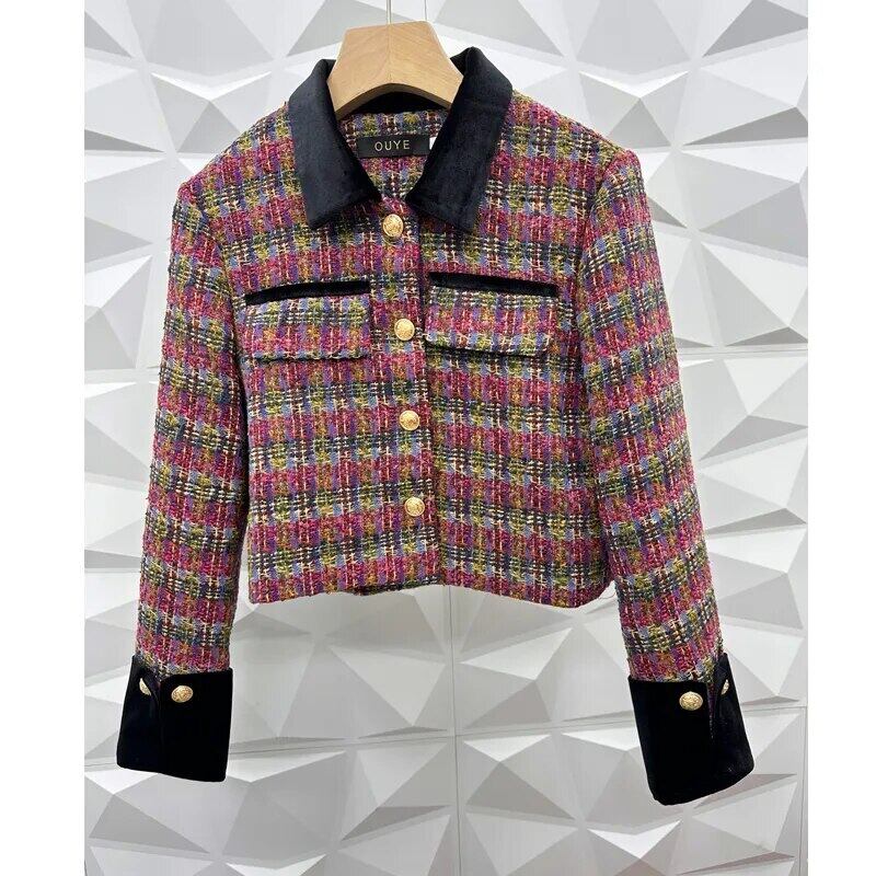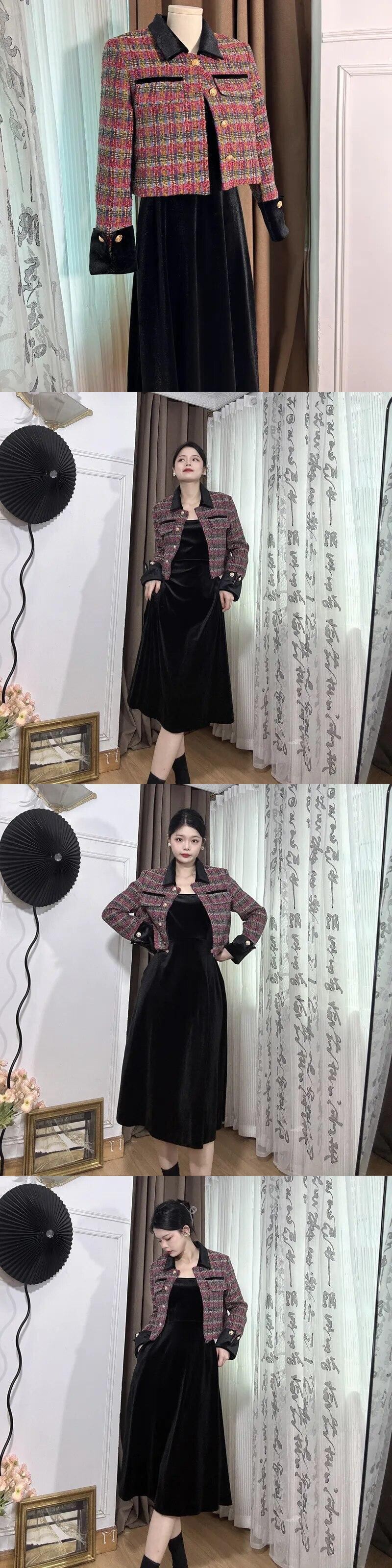 スモールフレグランスツーピースセットツイードジャケットコート+セクシーベルベットドレスセットフレンチ2ピーススーツ