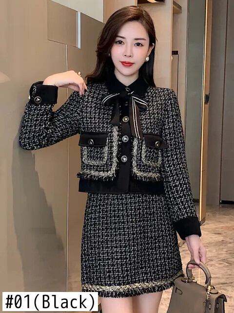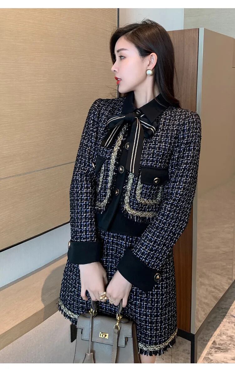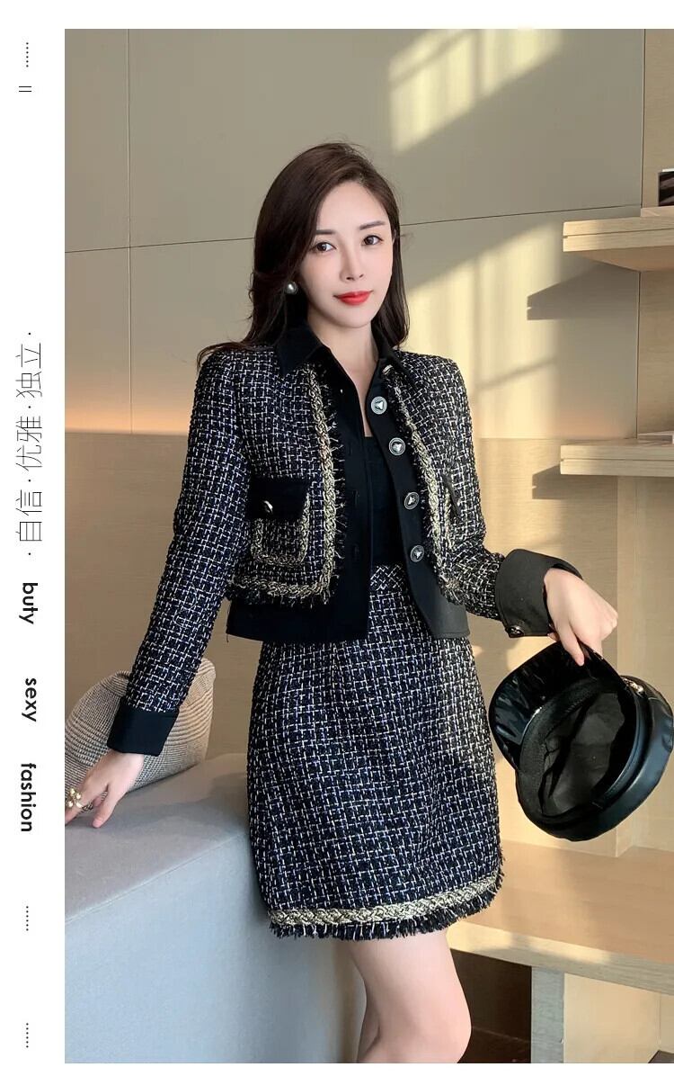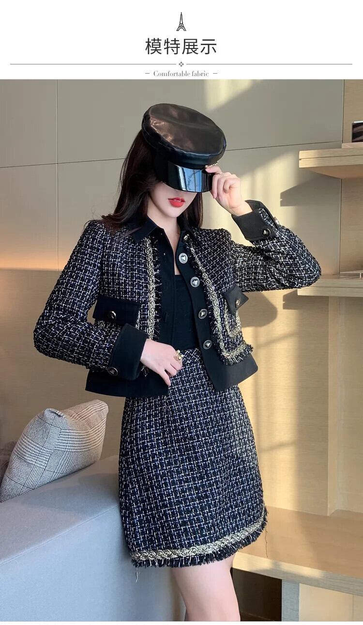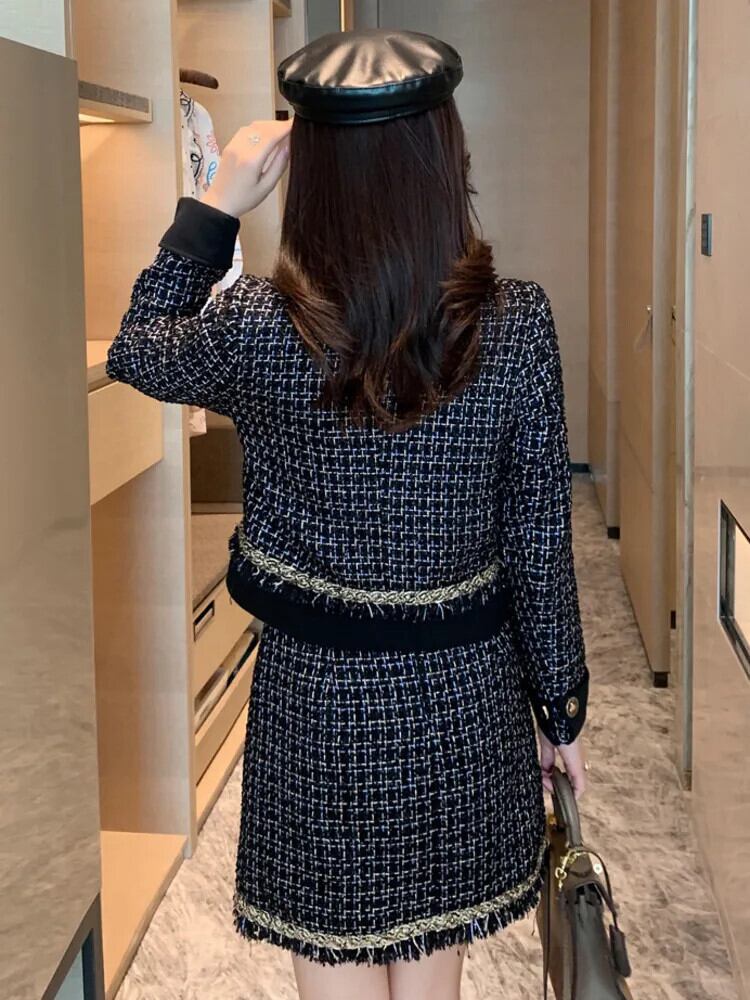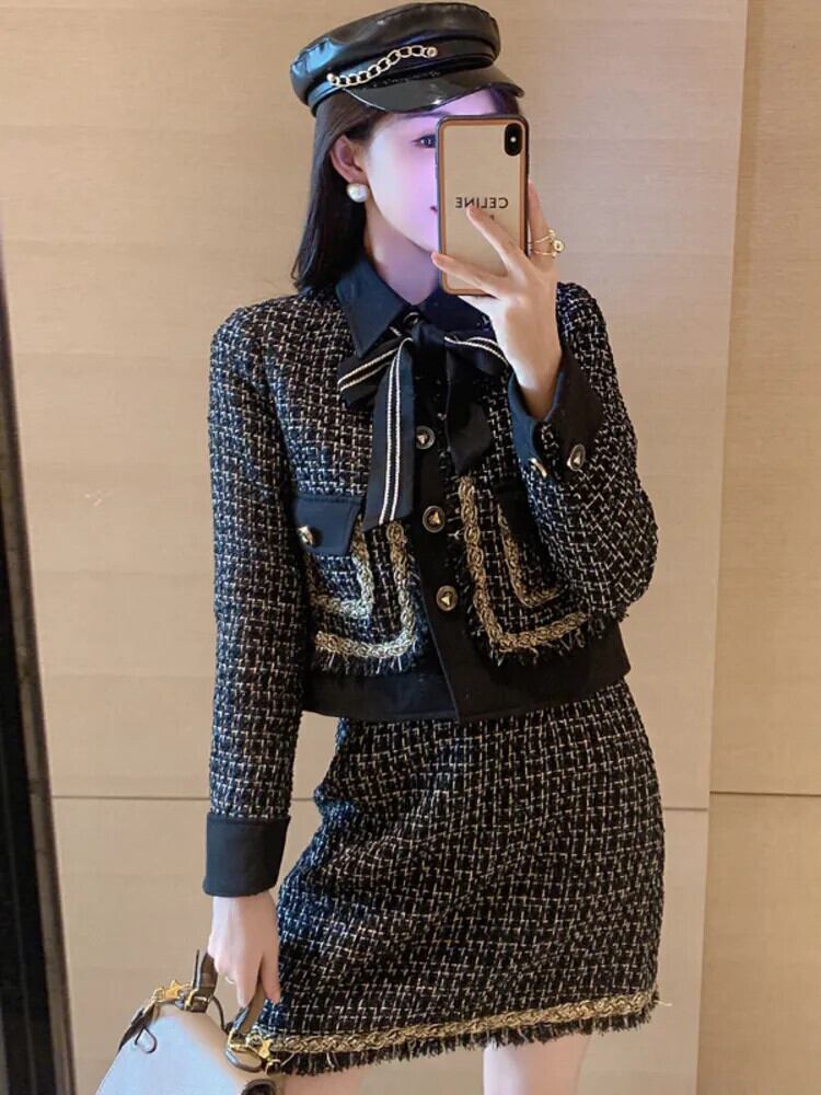 小さフレグランスツイード 2 点セットウールショートジャケットコート + スカートセット冬フレンチ 2 ピーススーツ ウィンター 冬物