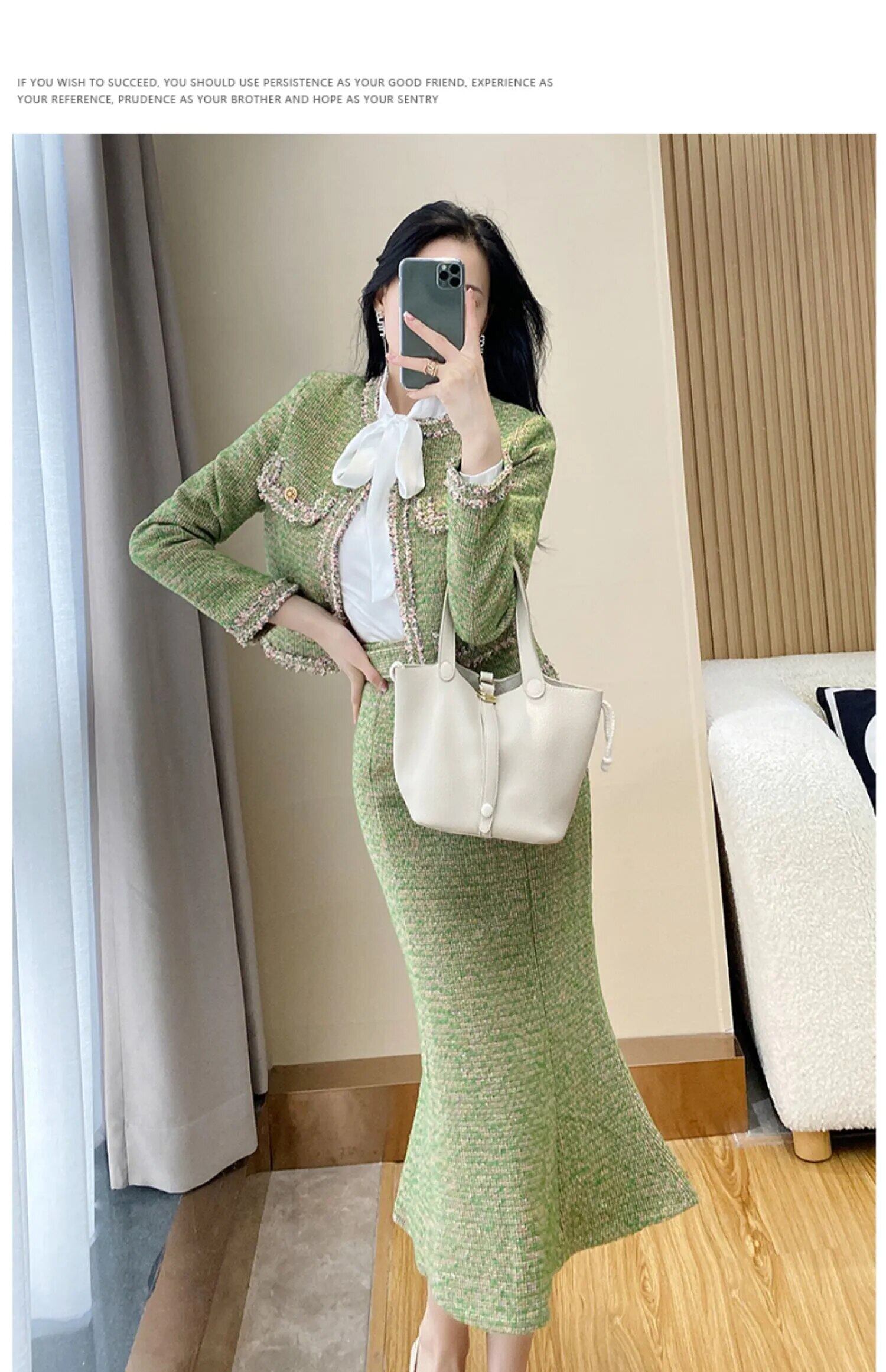 秋ストリートツーピースセットジャケットコート+マーメイドスカートスーツフレンチスモールフレグランス2ピース衣装 オータム 秋物