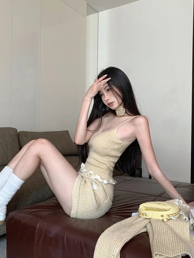 秋冬ニットカーディガン + キャミソール + パンツセットセーター衣装 roupas feminina y2k ショートセット オータム 秋物 ウィンター 冬物 フェミニン