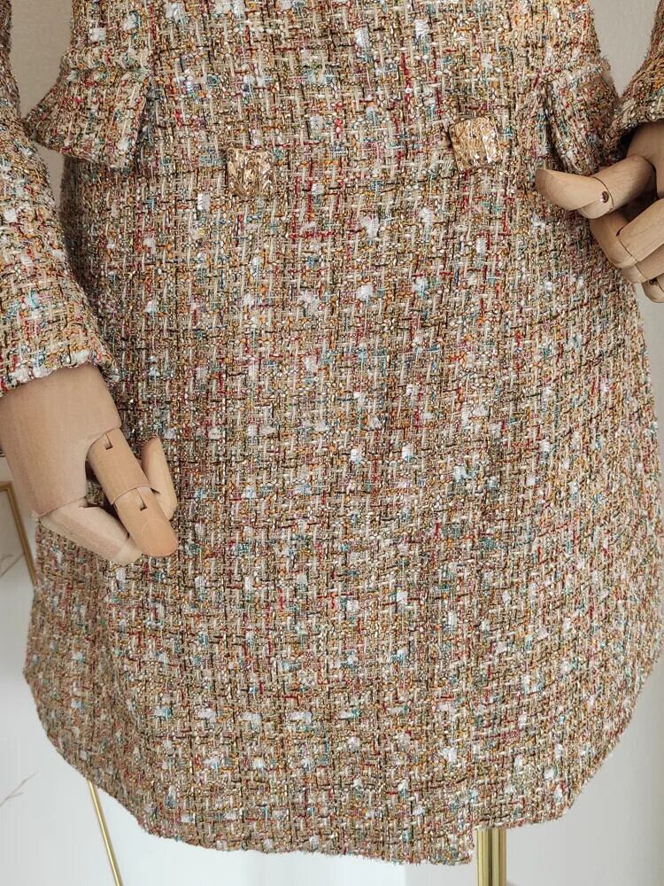 秋冬フレンチツイードドレス高級ミニドレス Vestidos イブニングパーティードレス Ropa デ オータム 秋物 ウィンター 冬物