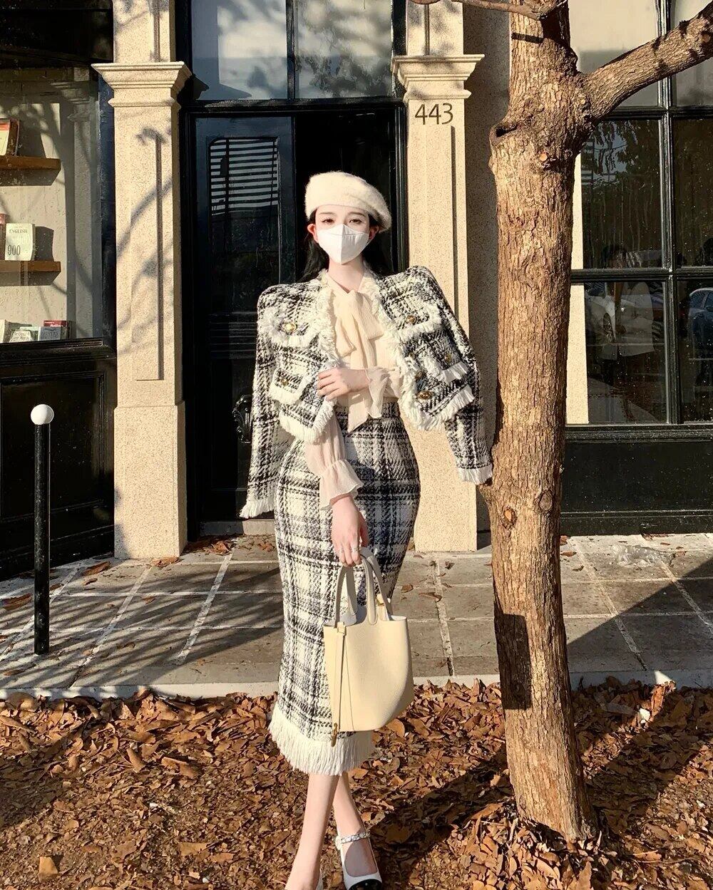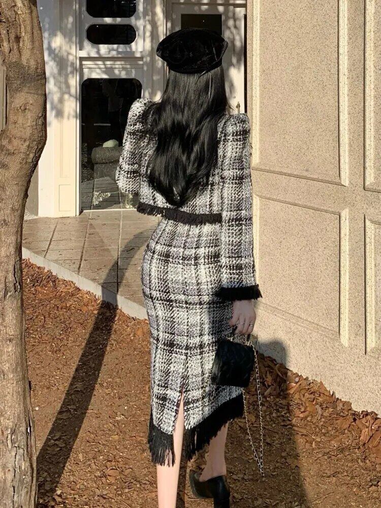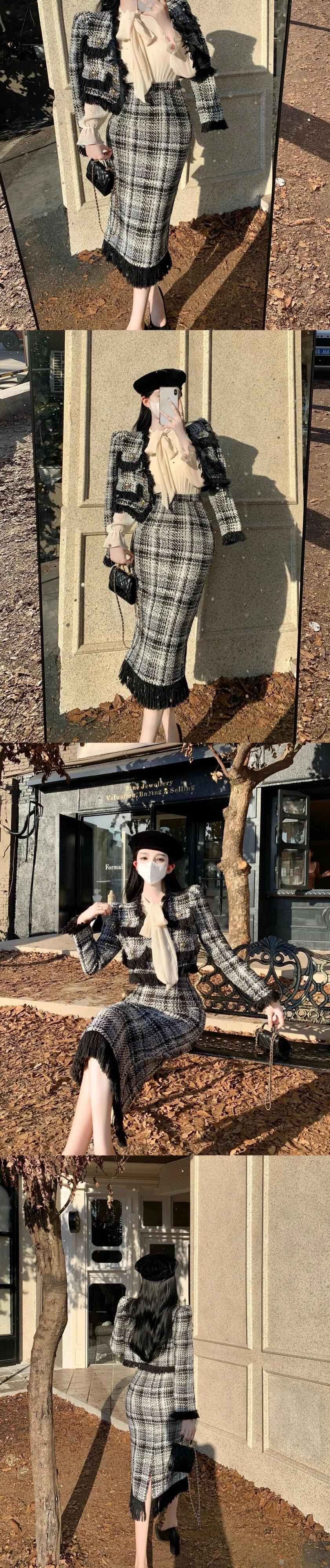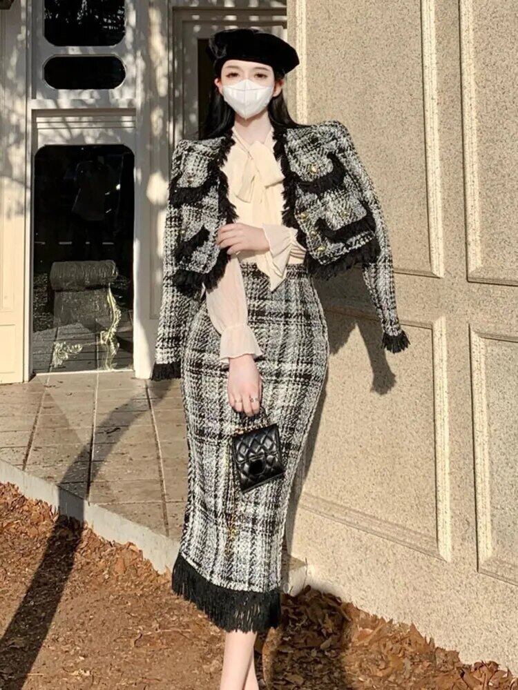 フレンチテルツーピースセットショートジャケットコート+ロングスカートスーツ2点セット装