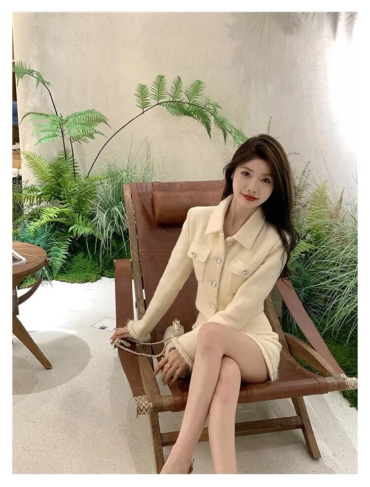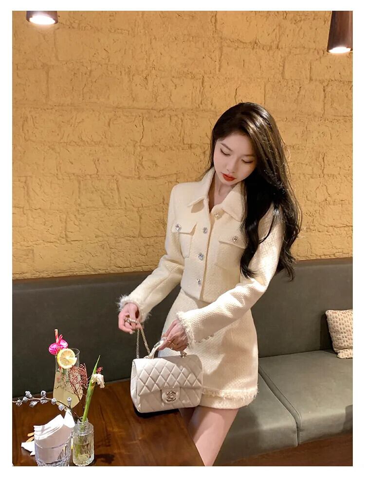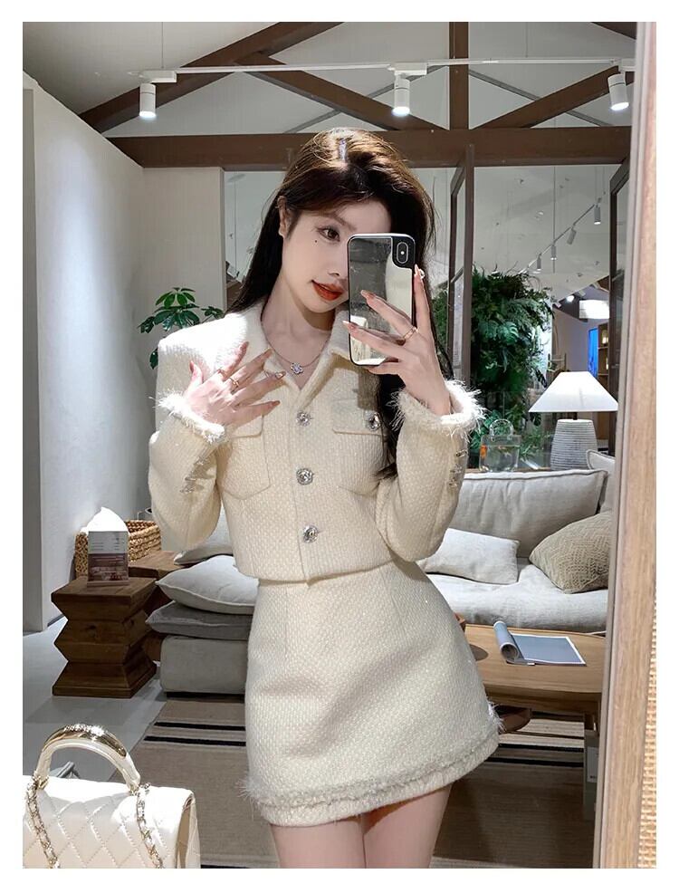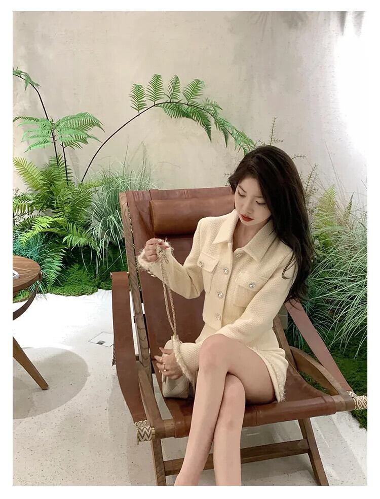 ツイード 2 点セットジャケットコート + スカート 2 点セット衣装 conjuntos femininos エレガンテスショートセット エレガント