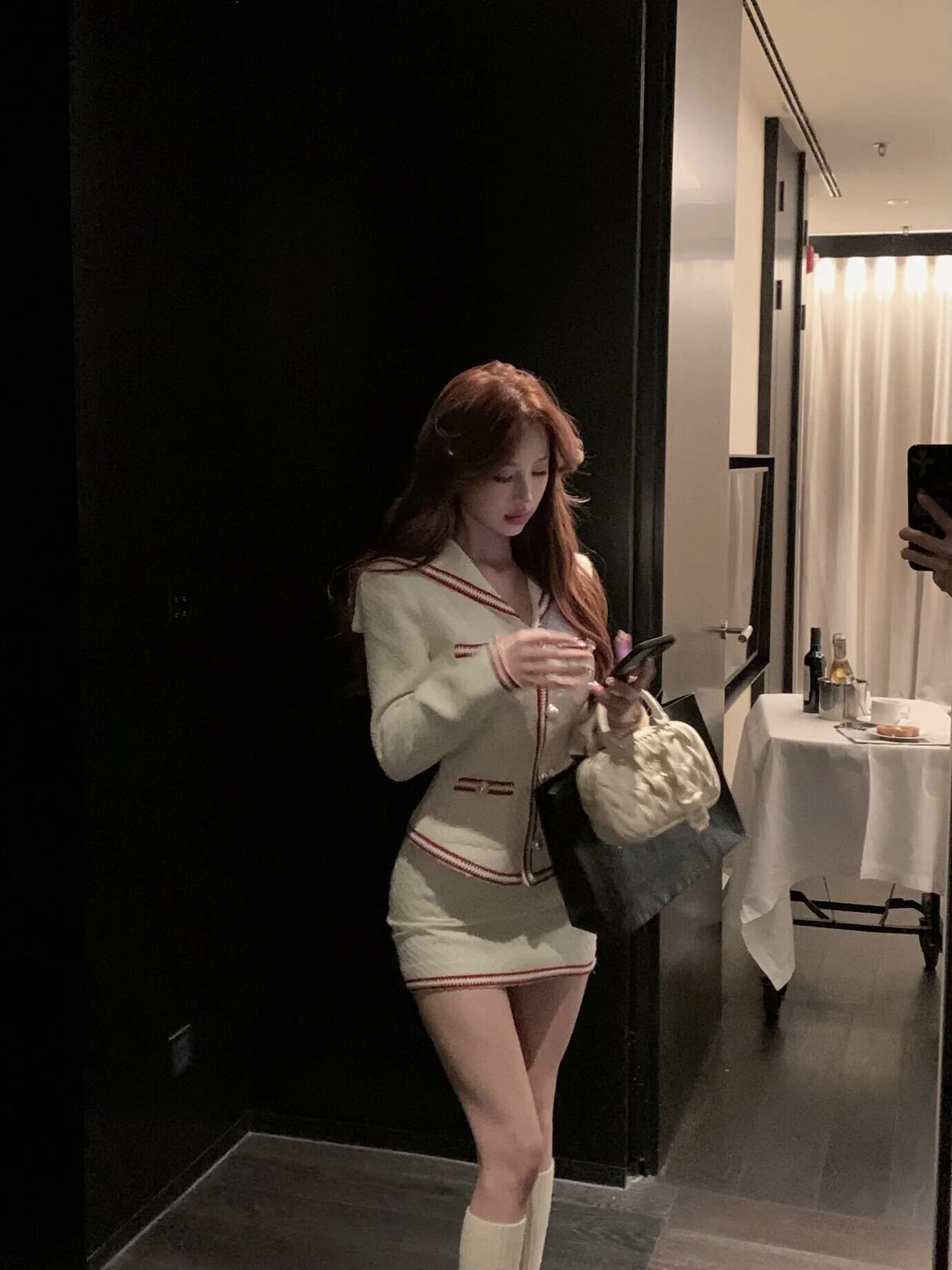 秋フランス小さ香りツイード 2 ピースセット衣装甘いジャケットコート + スカートツーピーススーツ 大人ガーリー スウィート キュート カジュアル オータム 秋物