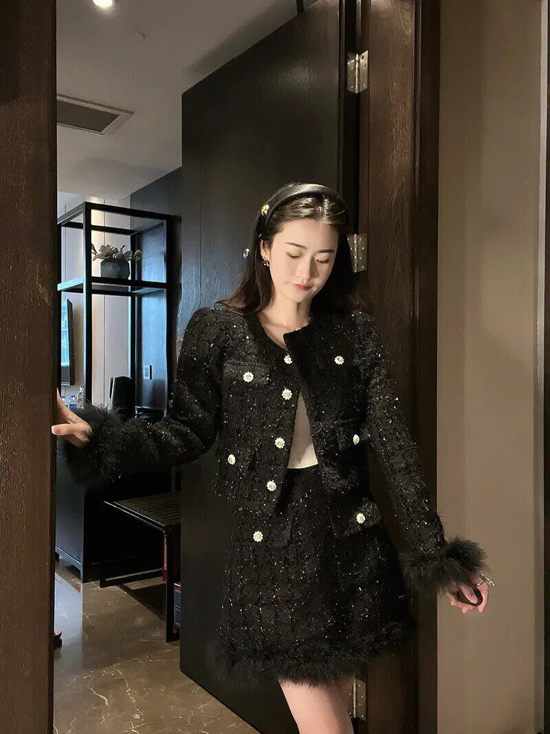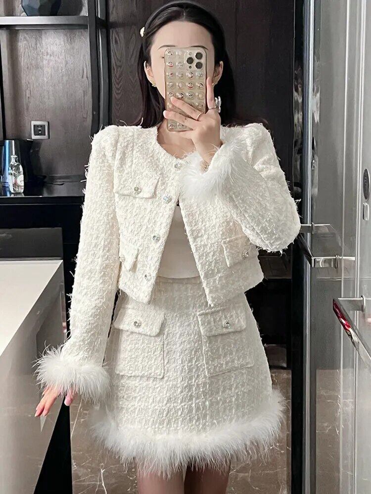 高級小さフレグランス 2 点セットショートジャケットコート + スカートスーツ秋冬甘い 2 点セット 大人ガーリー スウィート キュート カジュアル オータム 秋物 ウィンター 冬物