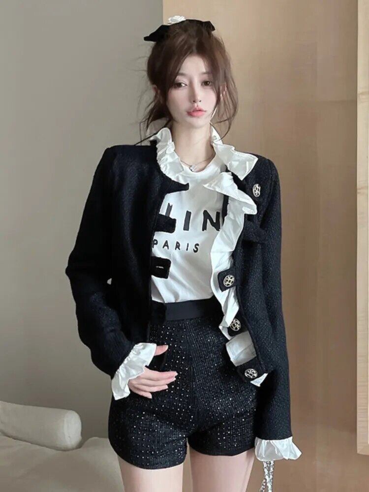 ストリートフレンチスモールフレグランスツイードジャケット秋冬フライドストリートショートコート生き抜く ウィンター 冬物