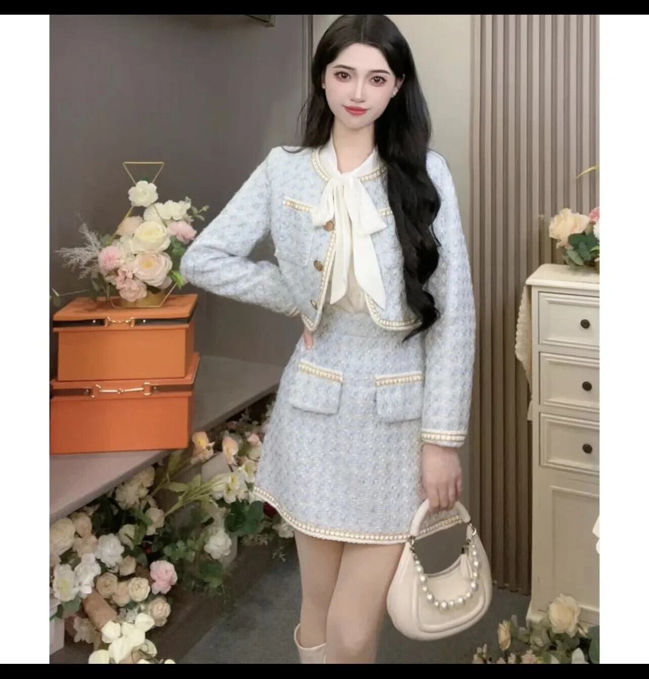 秋冬 2 点セット conjuntos femininos ジャケットスカートエレガンテス 2 点セット衣装 エレガント オータム 秋物 ウィンター 冬物