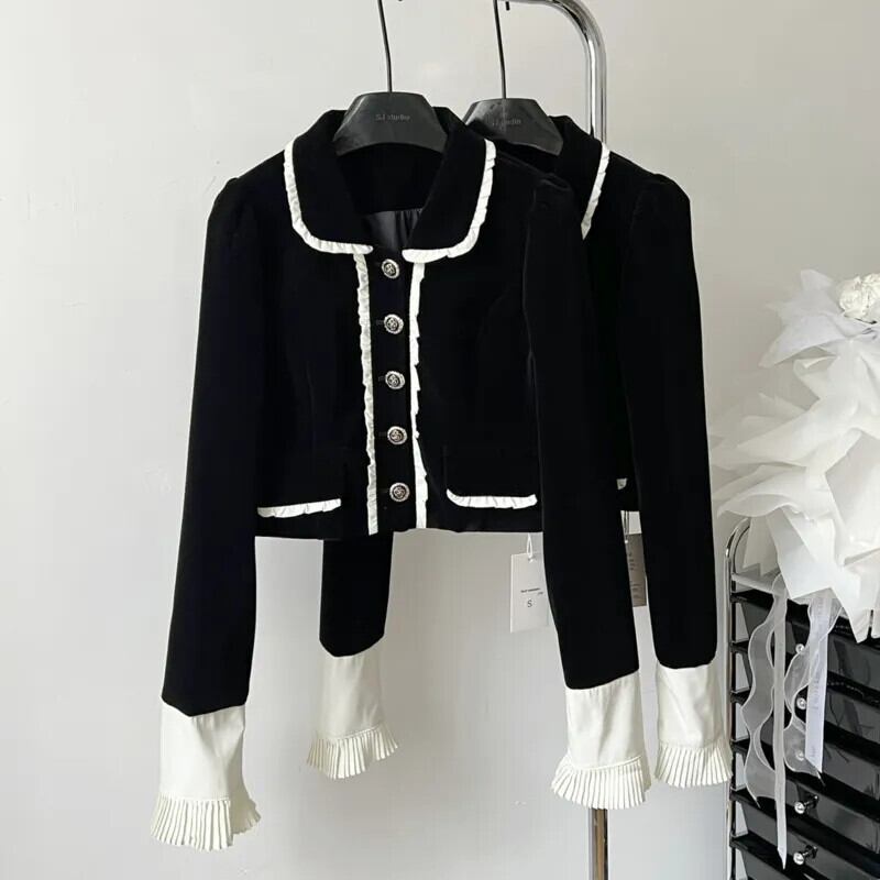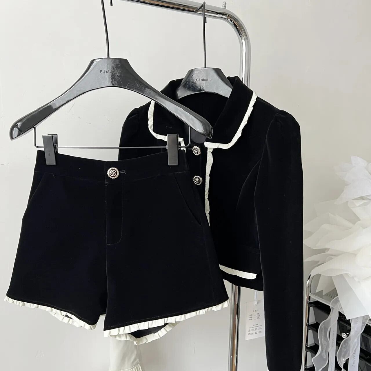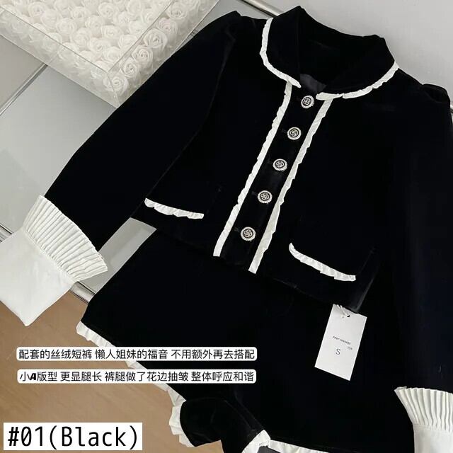 フレンチスモールフレグランスツーピースセットショートジャケットコート+ショートセット秋ベルベット2ピースパンツスーツ オータム 秋物