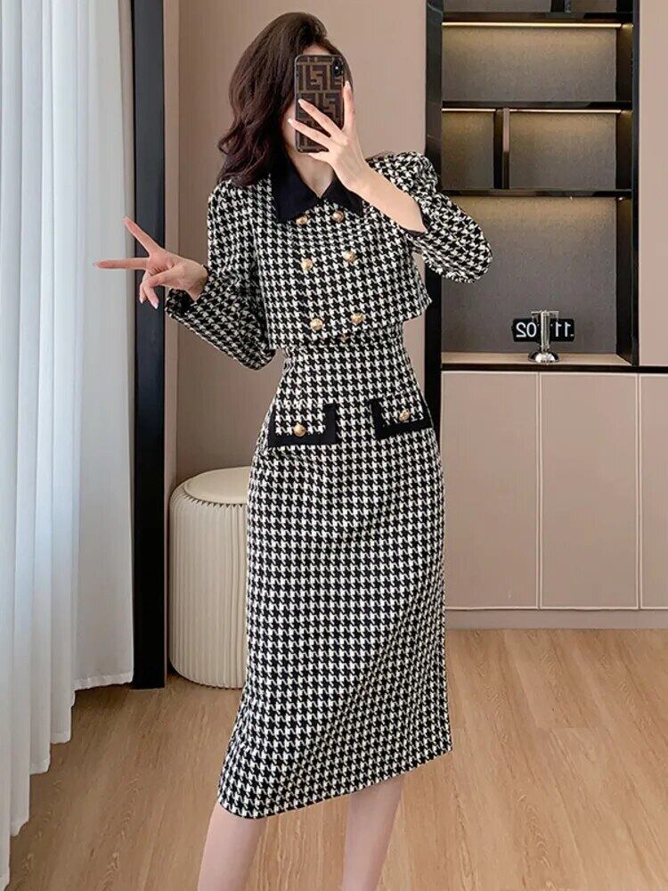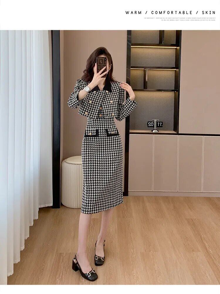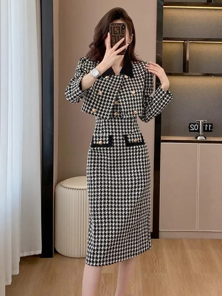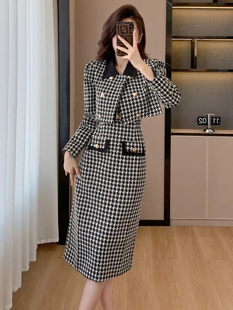 スモールフレグランスツーピースセットショートジャケットコート+スリングセクシーロングドレススーツ2点セット