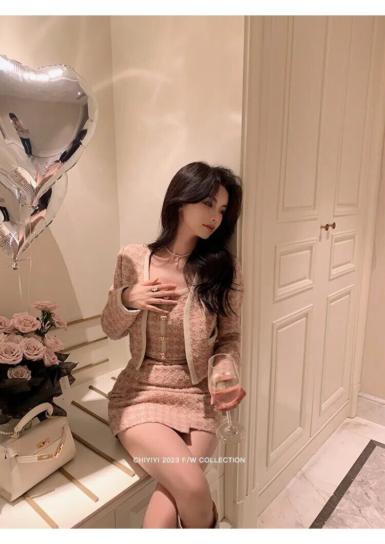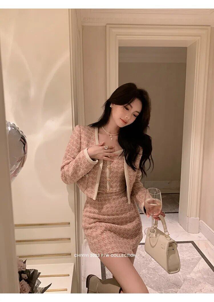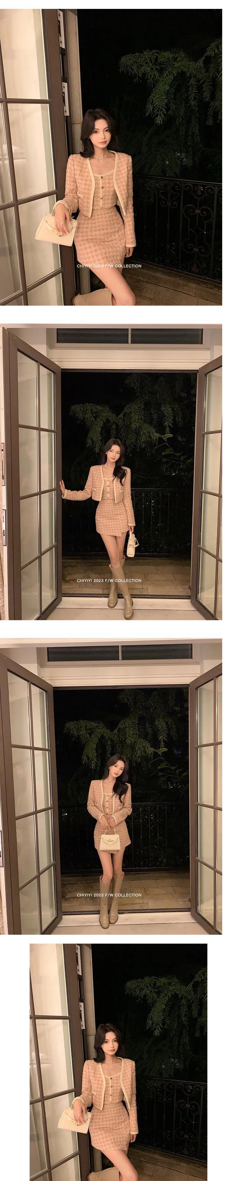 秋冬 conjuntos femininos エレガンテス ツイード 3 点セットジャケットコート + ベスト + スカート衣装 エレガント オータム 秋物 ウィンター 冬物