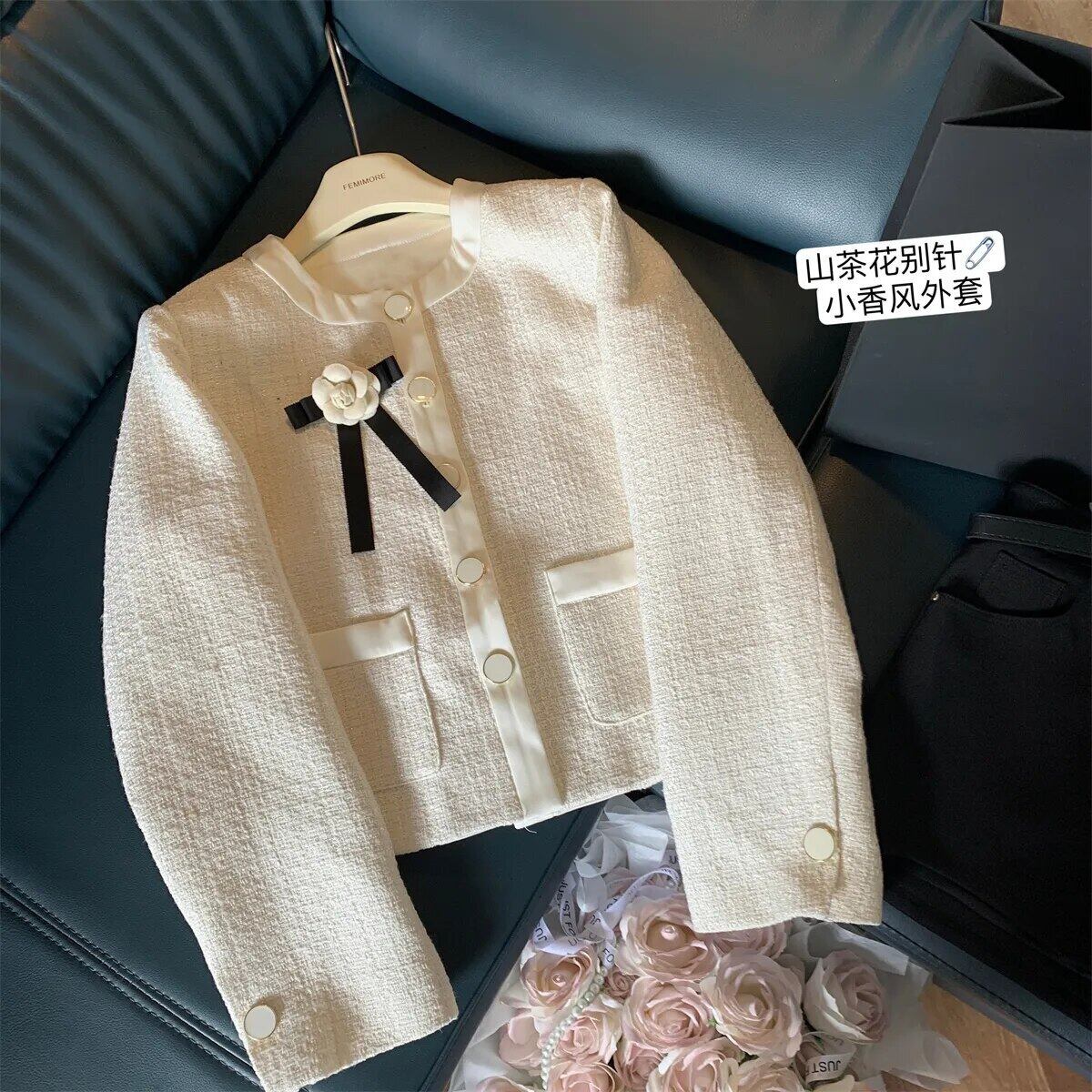フレンチスモールフレグランスツイードジャケット秋冬甘いリボンショートコートアウターChaquetas 大人ガーリー スウィート キュート カジュアル ウィンター 冬物