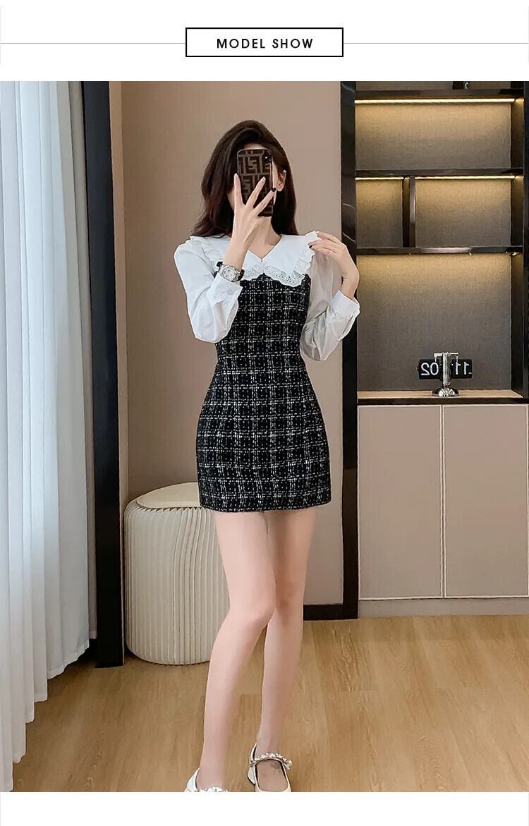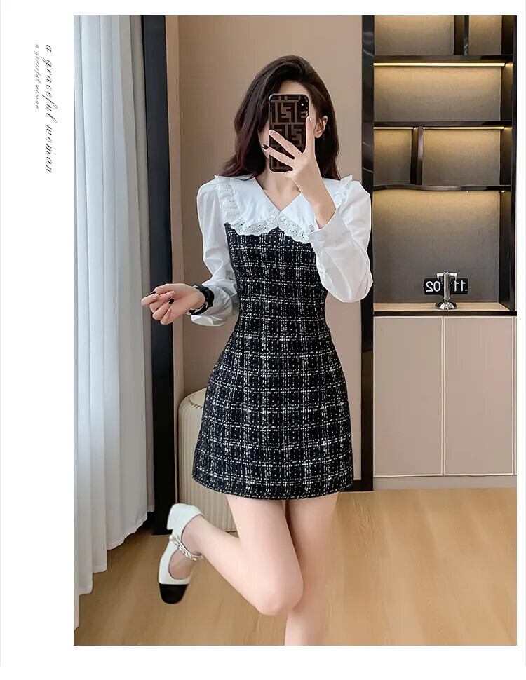 秋フランス小さ香りツイードドレス甘いミニドレス Vestidos イブニングドレスローブ 大人ガーリー スウィート キュート カジュアル オータム 秋物