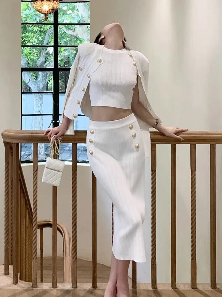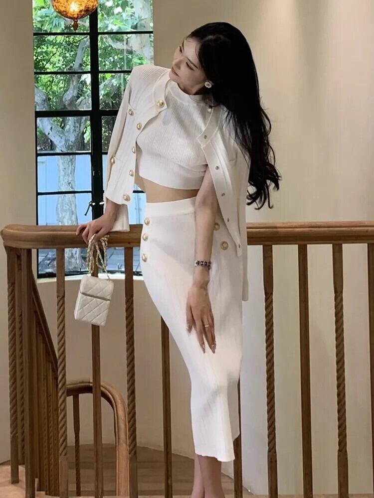 ストリートフレンチニット3点セットカーディガンコート+ベスト+スカートスーツ秋3点セット