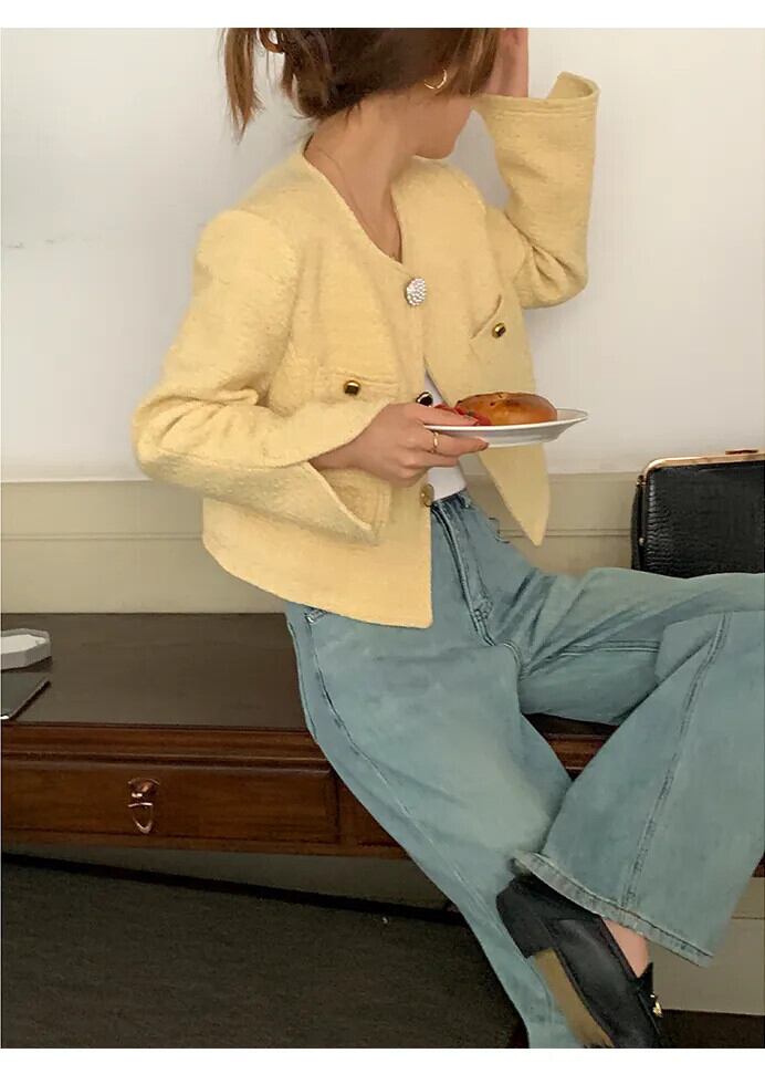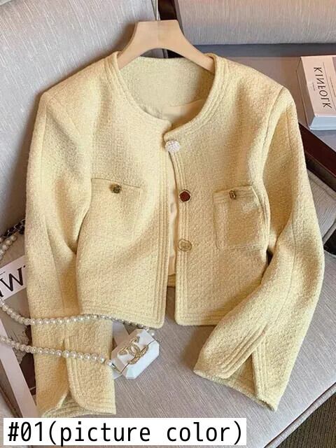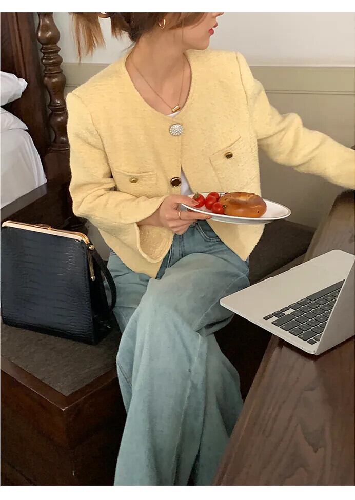 フレンチスモールフレグランスツイードジャケット秋冬ウールショートコートアウター ウィンター 冬物