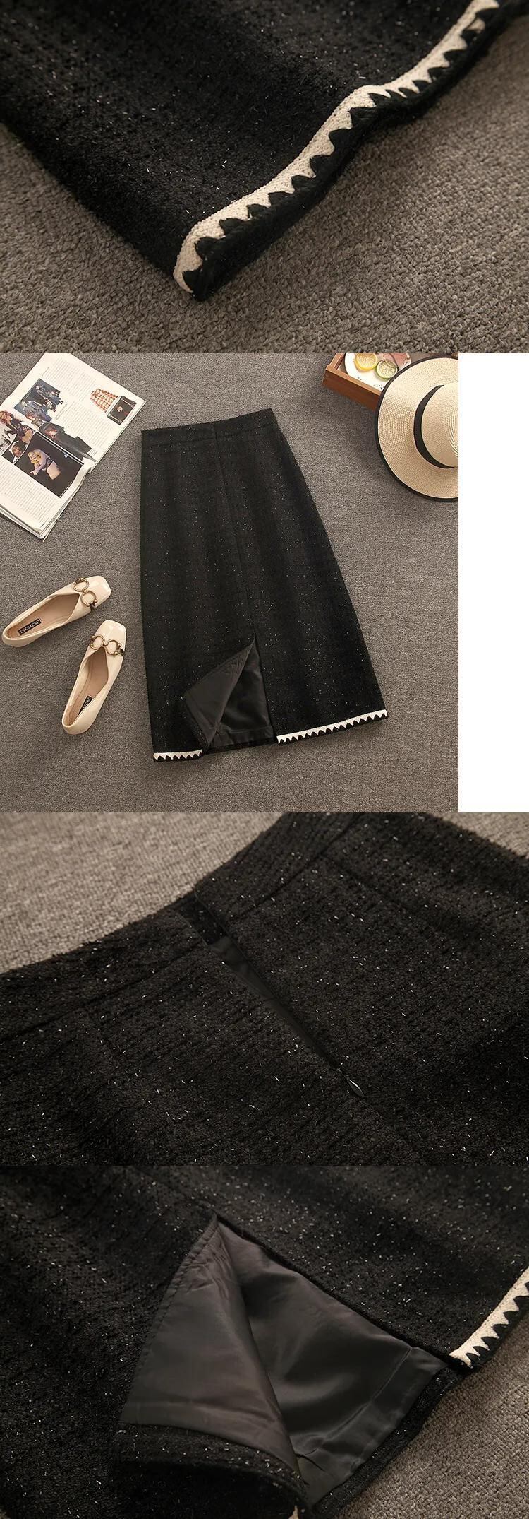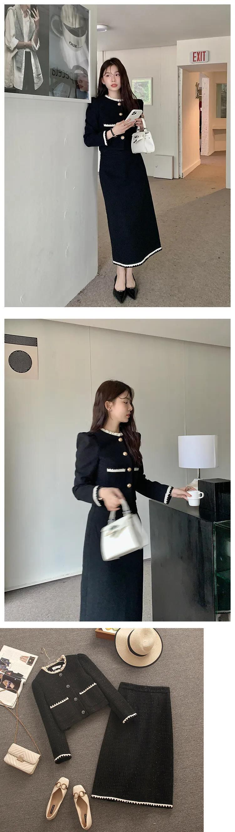 フレンチヘップバーン小さフレグランスツイードツーピースセット秋冬ショートジャケットコート+ロングスカート2ピーススーツ オータム 秋物 ウィンター 冬物