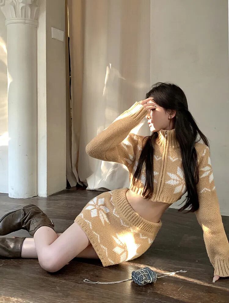 秋冬ニットツーピースセットトップス + スカートショートセットプルオーバーセーター 2 点セット衣装 オータム 秋物 ウィンター 冬物