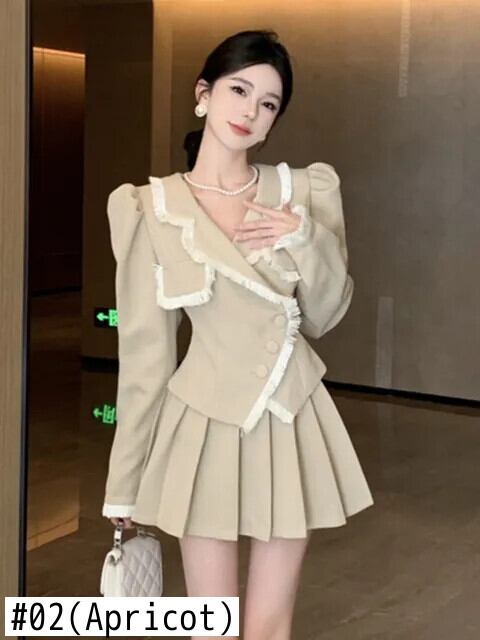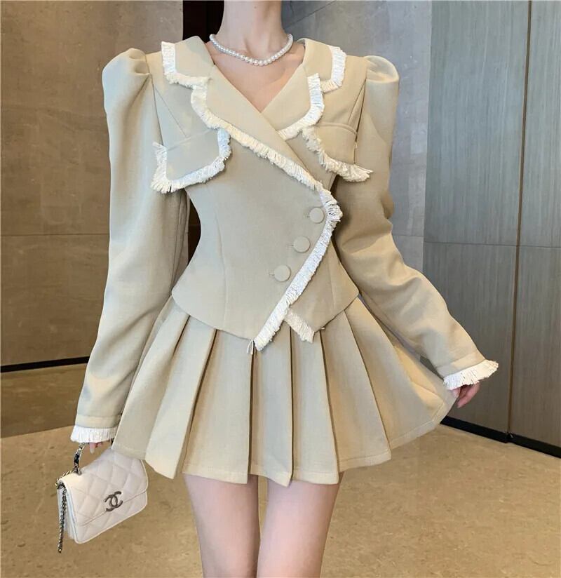 秋冬フレンチスモールフレグランスツーピースセットテルショートコート+プリーツスカート2点衣装 オータム 秋物 ウィンター 冬物