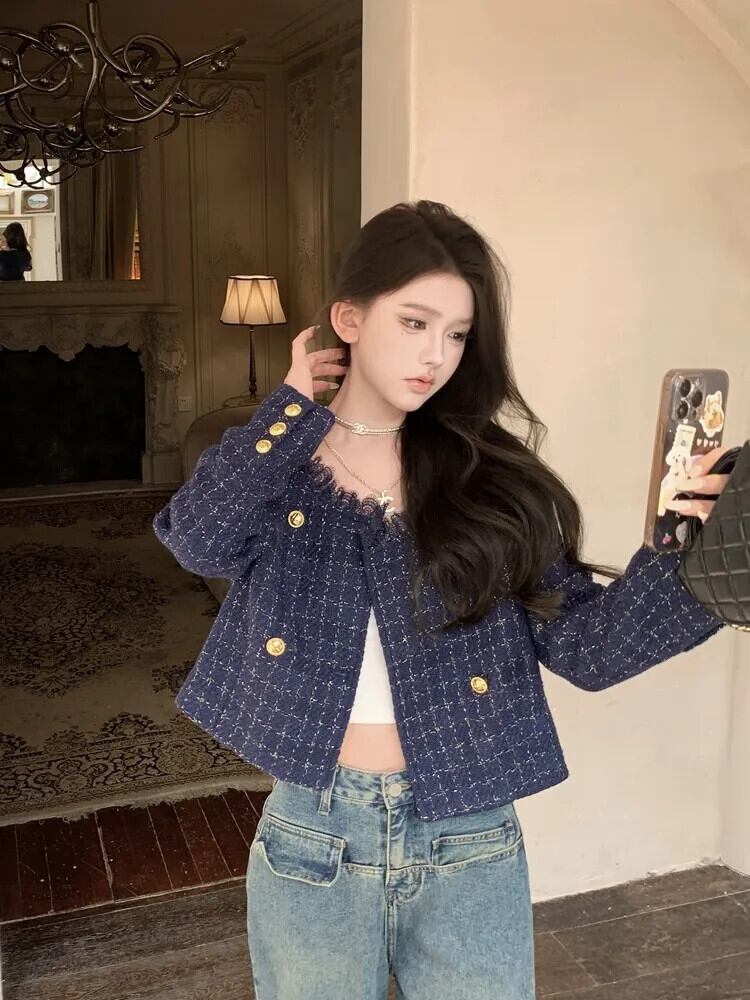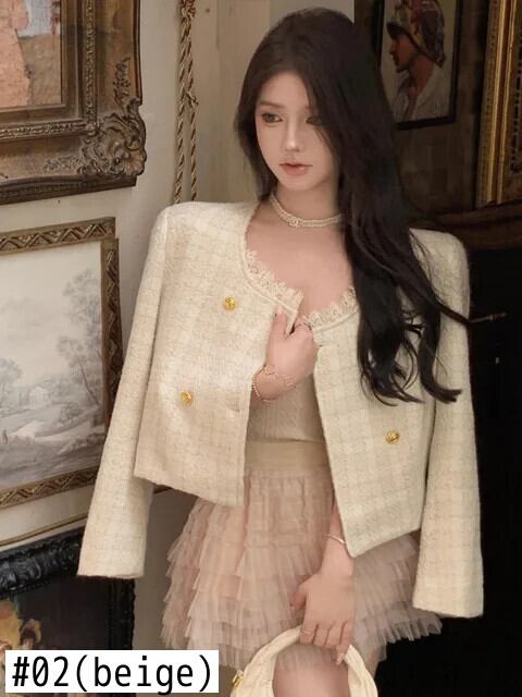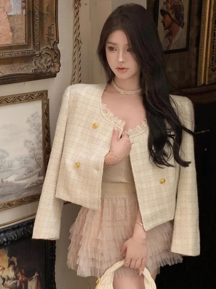 秋冬ツイードジャケットスモールフレグランスウールクロップドコートショートアウター オータム 秋物 ウィンター 冬物