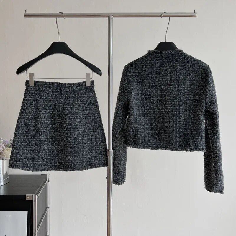 秋冬ツイード 2 点セットジャケットコート + スカート 2 点セット オータム 秋物 ウィンター 冬物