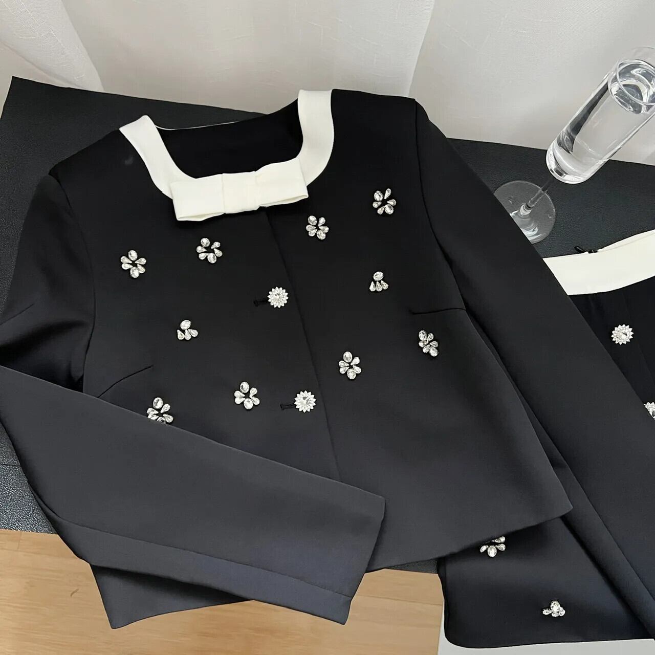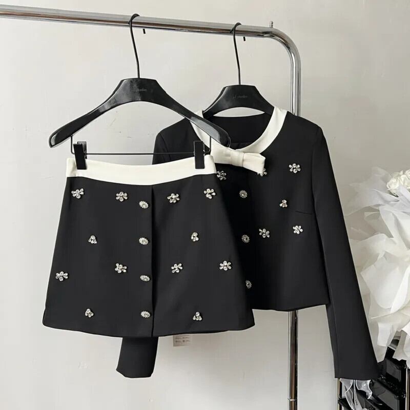 ストリートフレンチ高級ダイヤモンドビーズ 2 点セットブレザーコート + スカートスーツ秋 Y2K ツーピース衣装 オータム 秋物
