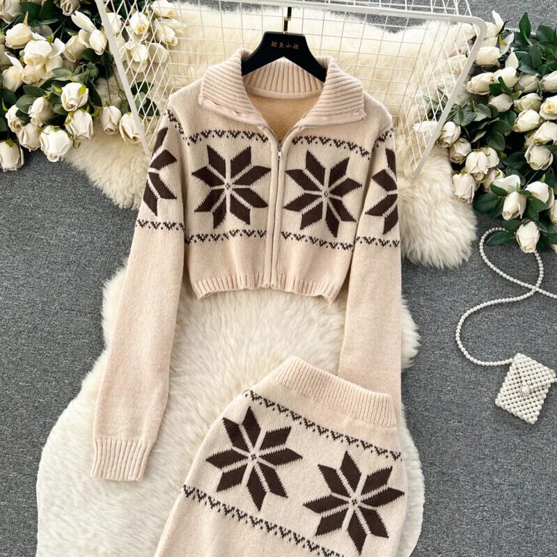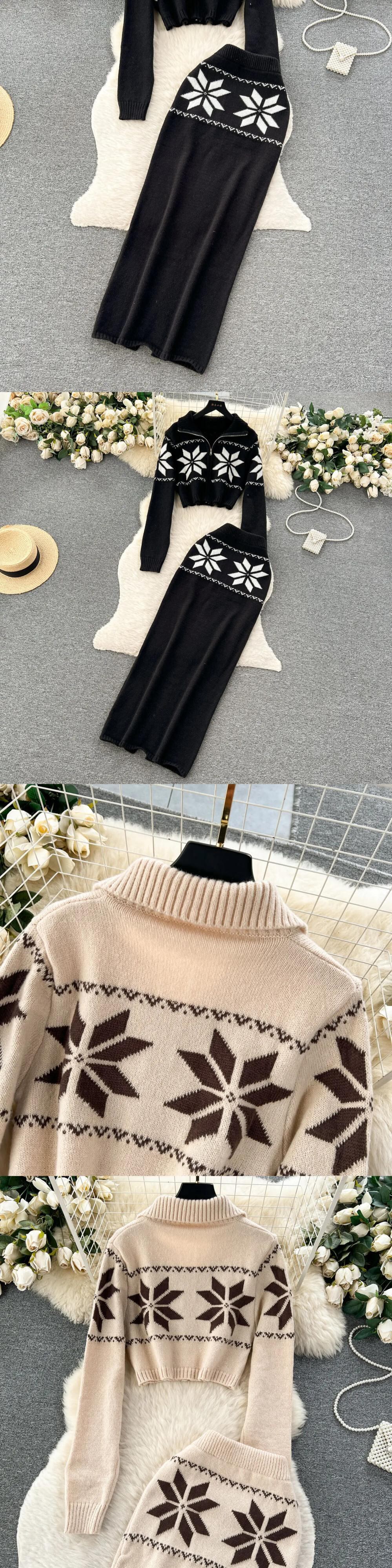 秋冬ニットツーピースセットトップス + ロングスカートセットプルオーバーセーター 2 点セット衣装 オータム 秋物 ウィンター 冬物