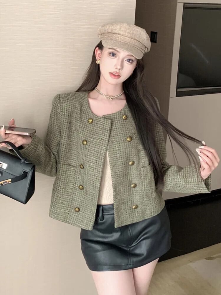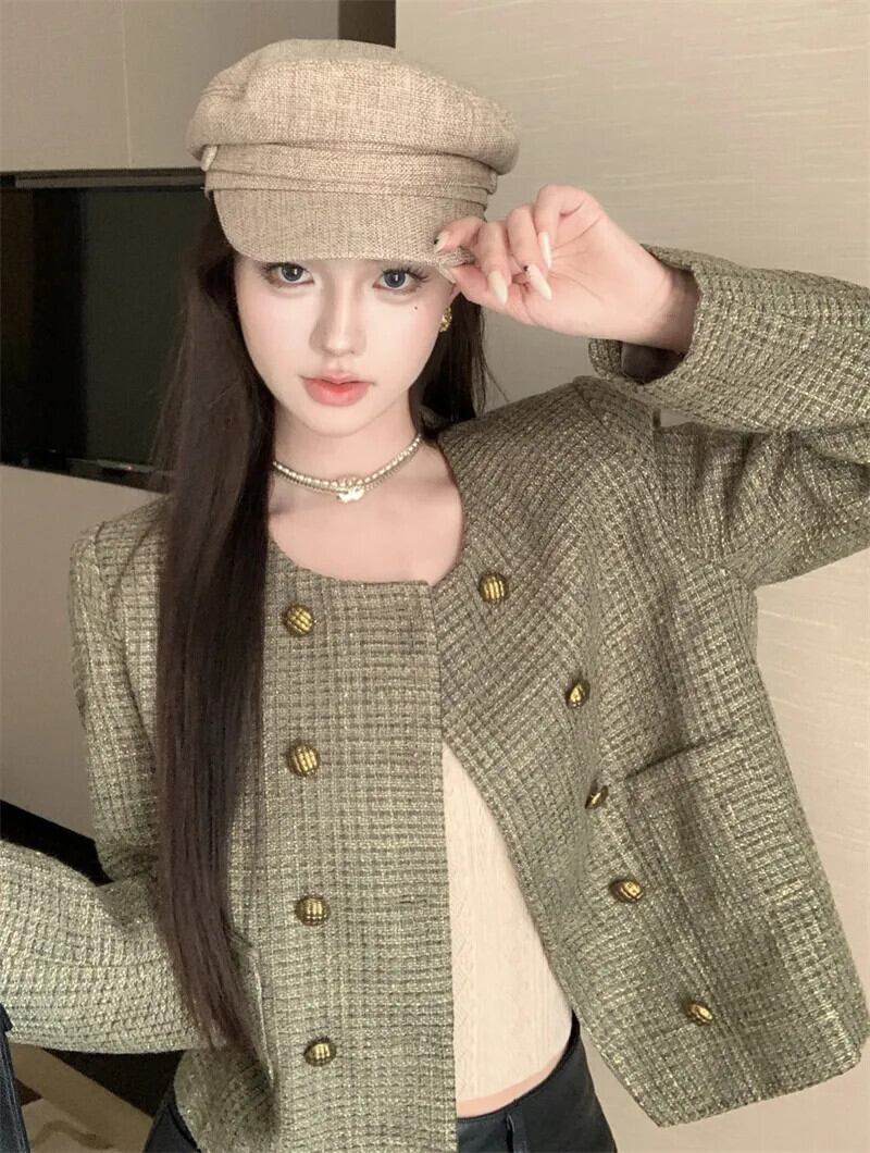 秋冬フレンチスモールフレグランスコートルーズツイードジャケットストリートアウター オータム 秋物 ウィンター 冬物