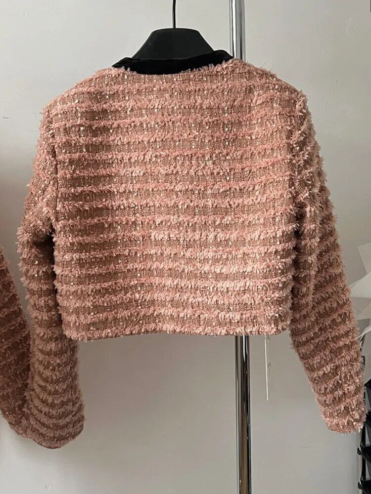 秋小さフレグランスジャケットストリートウールコートアウタートップチャケータパラムヘーレス オータム 秋物