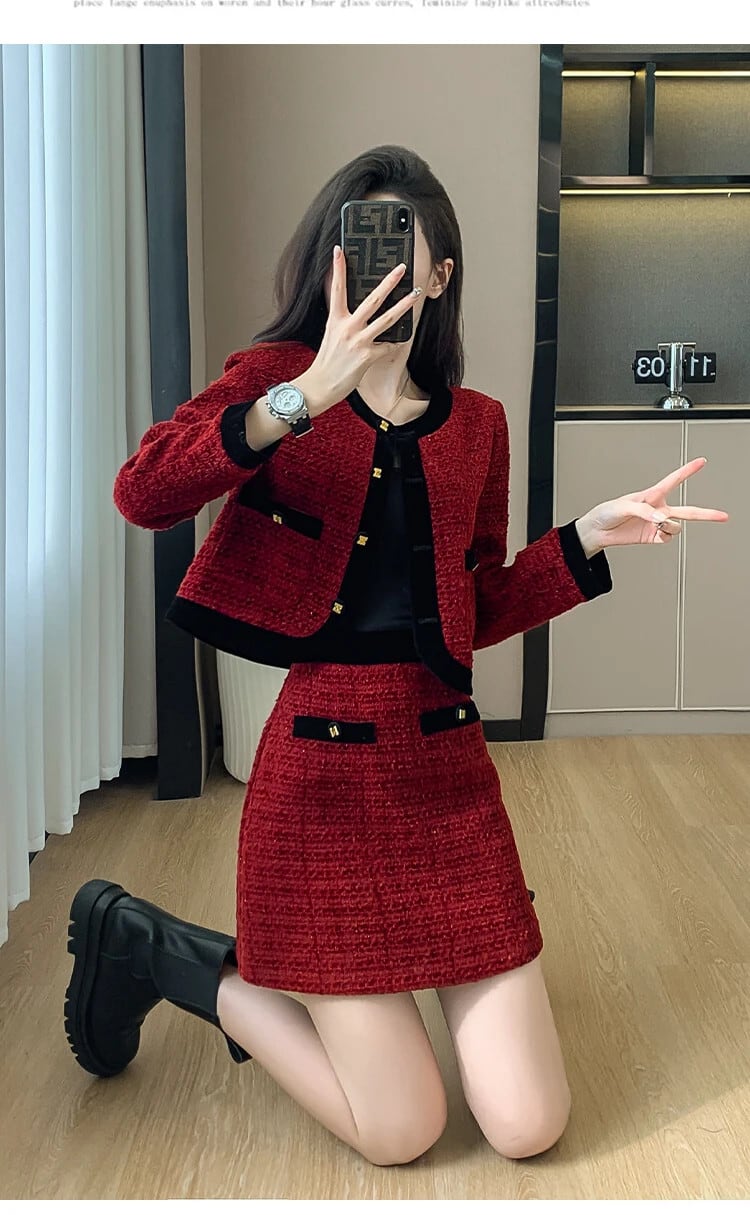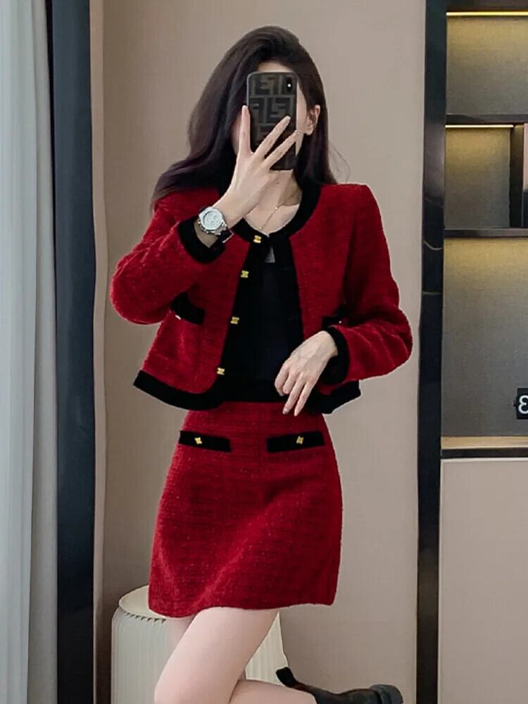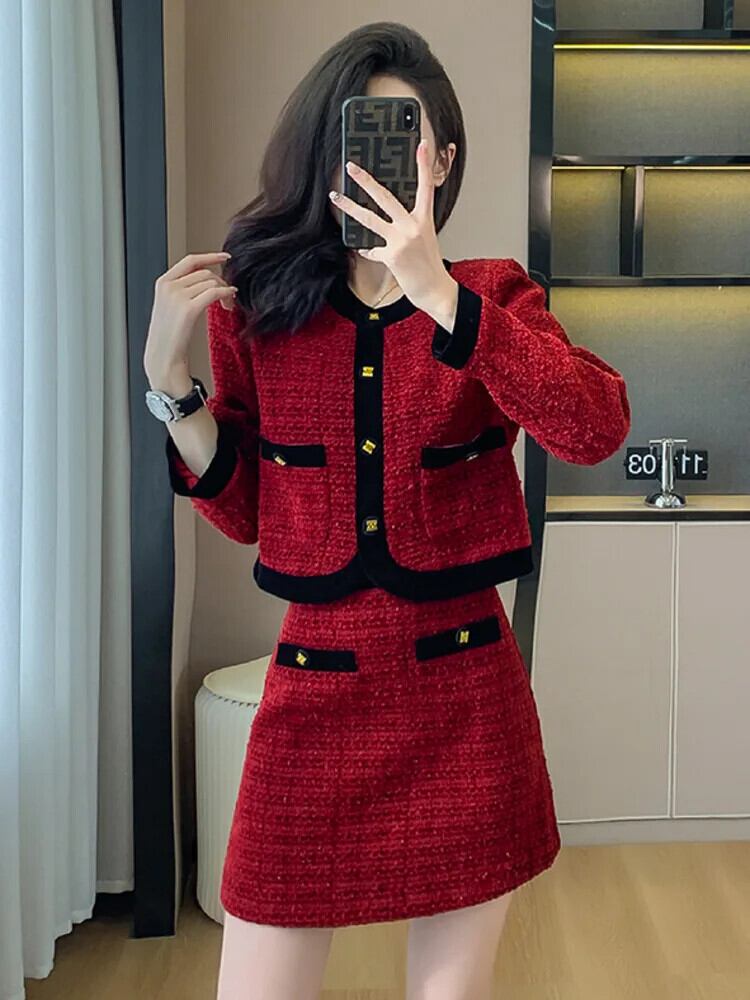 秋冬お揃いセット赤ツーピースセットジャケットコート+スカート2点セット衣装 レッド オータム 秋物 ウィンター 冬物
