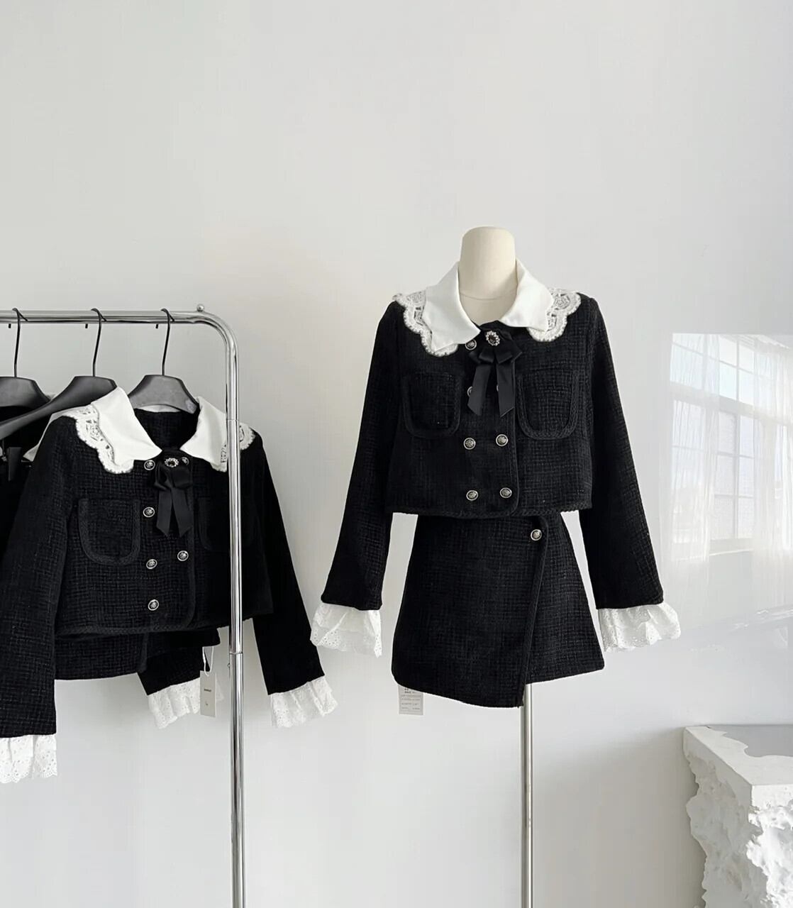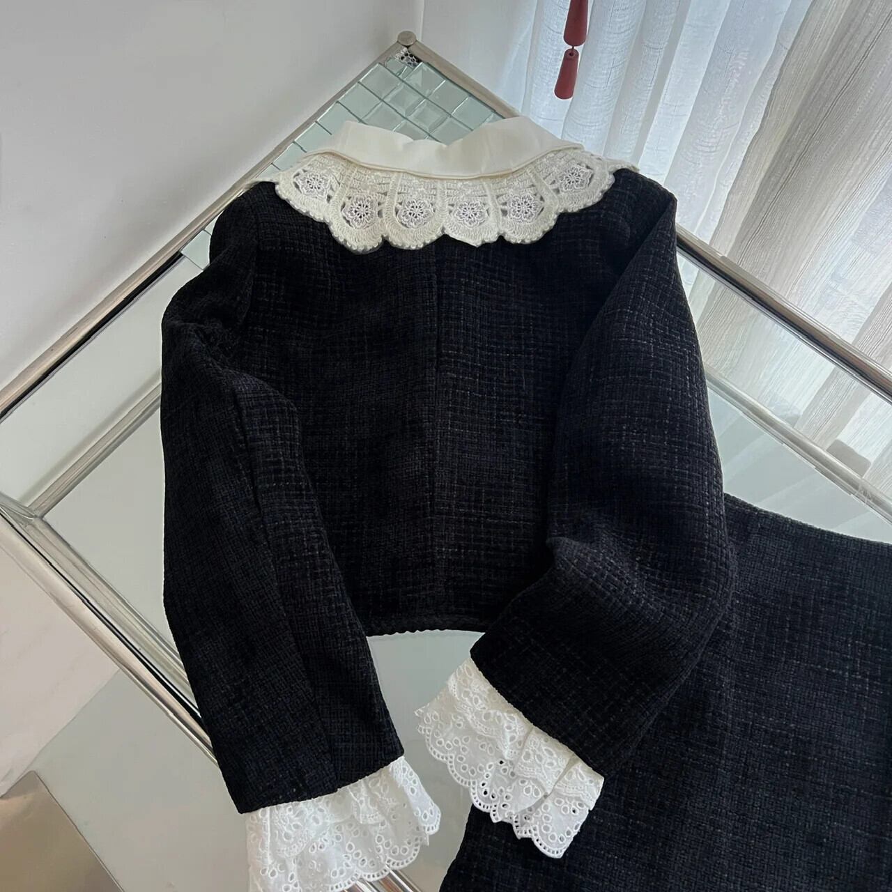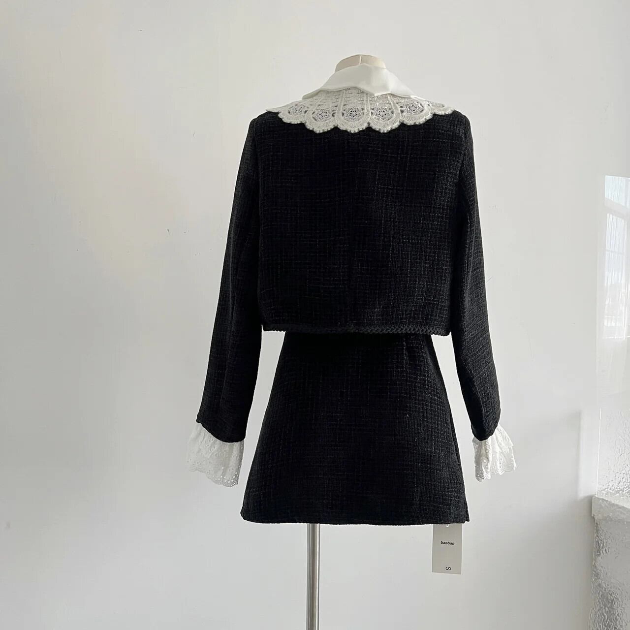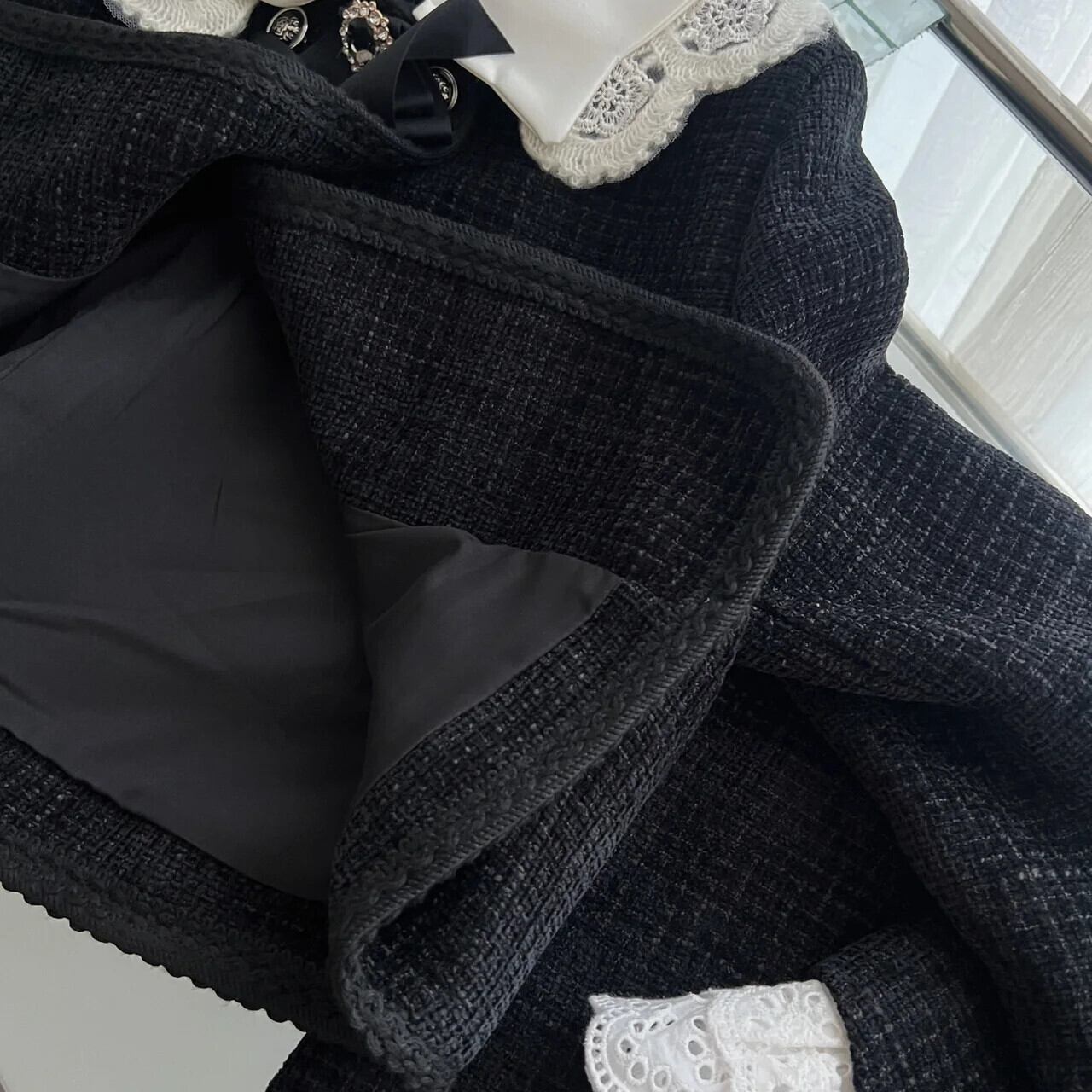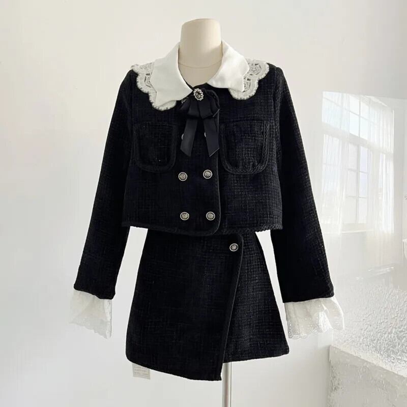 秋冬甘い小さ香りツイード 2 点セットショートジャケットコート + スカート 2 点セット衣装 大人ガーリー スウィート キュート カジュアル オータム 秋物 ウィンター 冬物