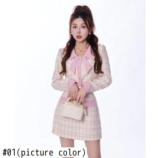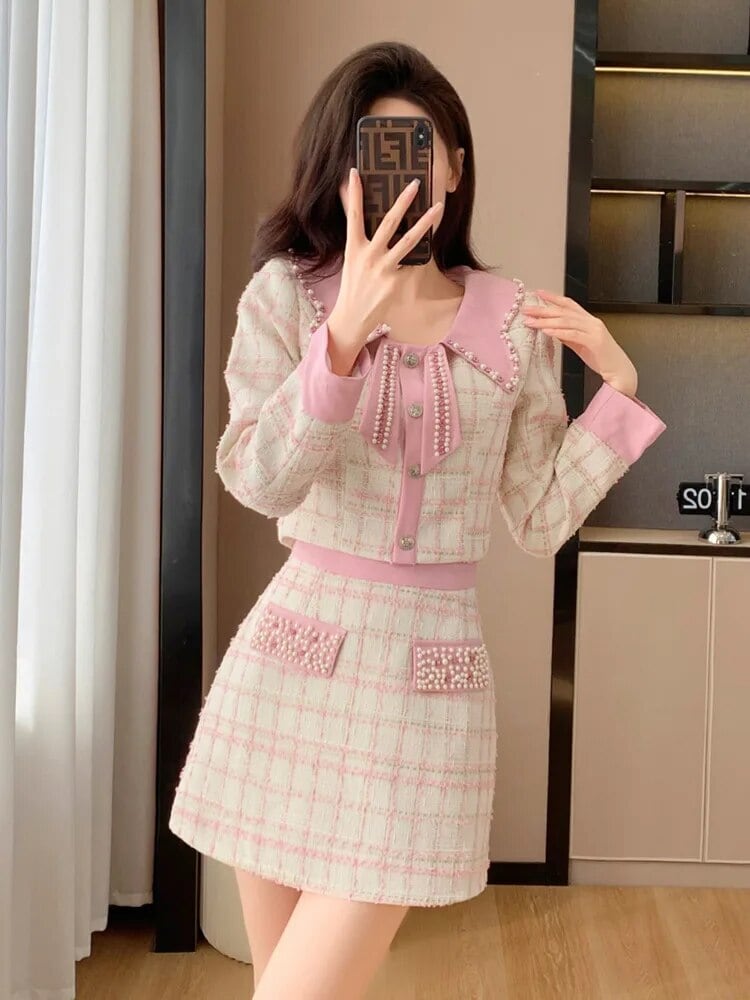 フレンチスモールフレグランスツーピースセット秋甘いショートジャケットコート+スカート2点衣装 大人ガーリー スウィート キュート カジュアル オータム 秋物