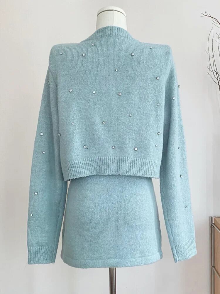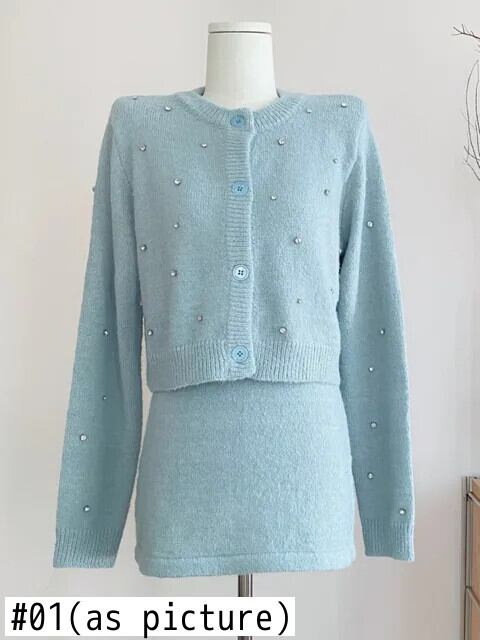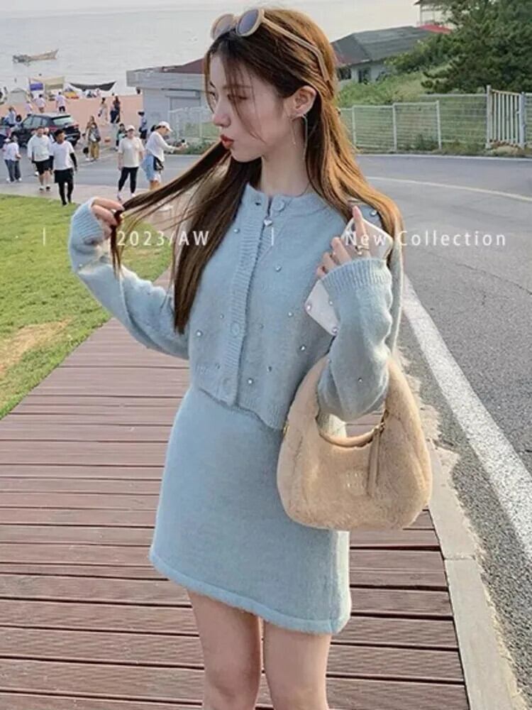 秋冬ニット 2 点セットカーディガントップス + スカートショートセットセーター 2 点セット衣装 オータム 秋物 ウィンター 冬物