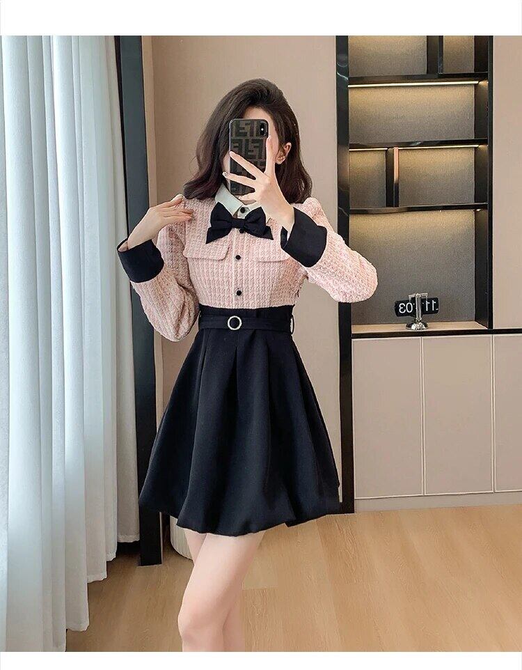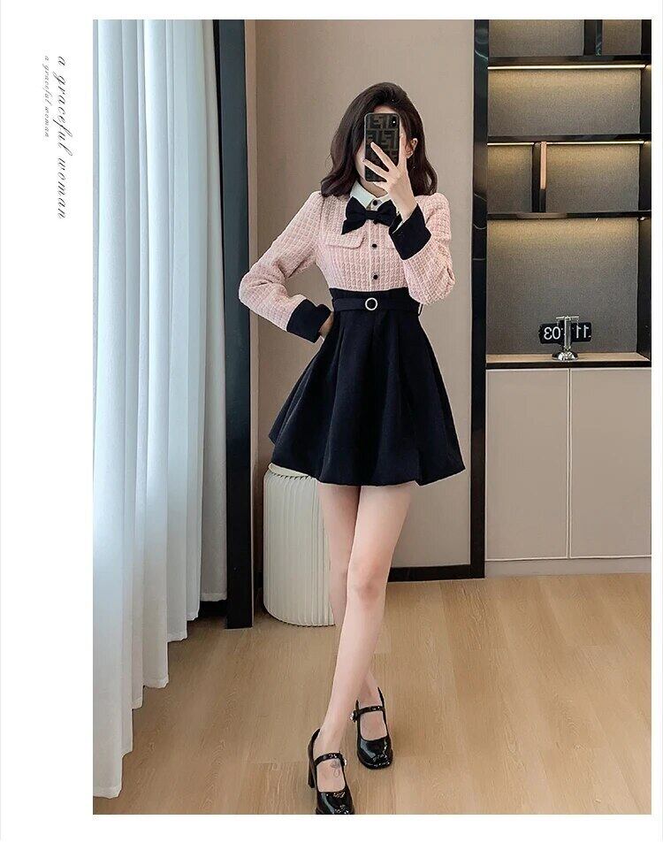 秋冬フレンチスモールフレグランツイードドレススウィートミニドレスvestidosイブニングパーティードレスローブ 大人ガーリー キュート カジュアル オータム 秋物 ウィンター 冬物