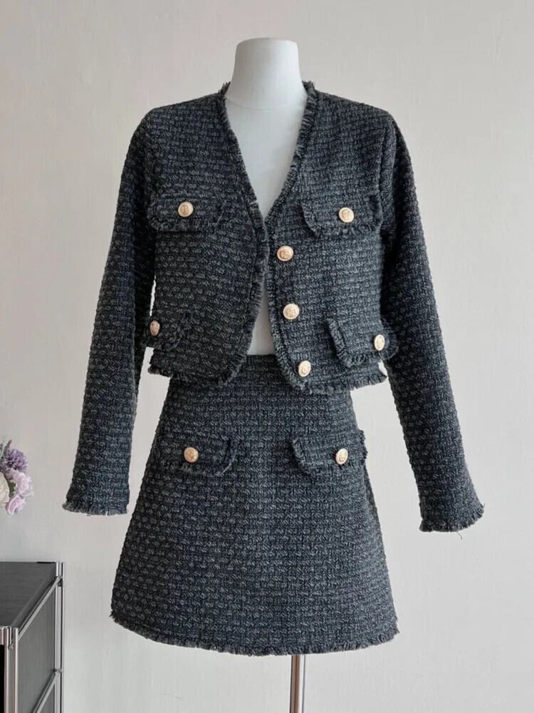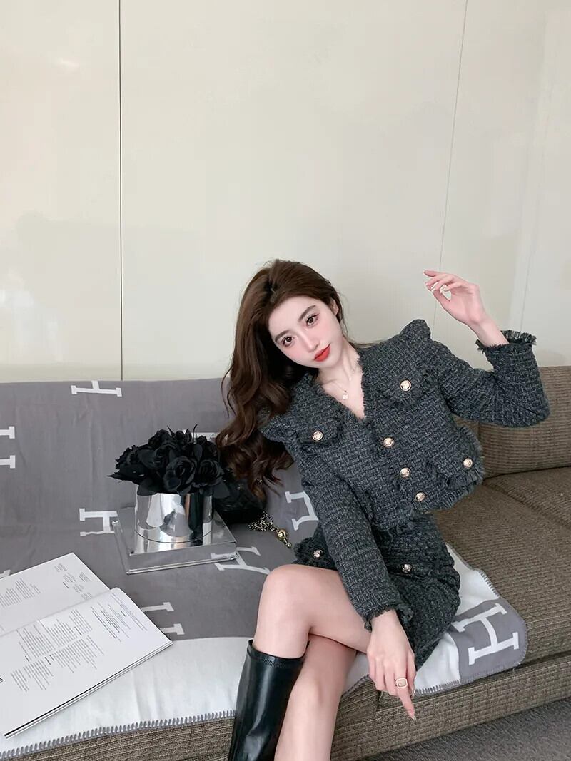 厚手冬フレンチスモールフレグランスツイードツーピースセット ウィンター 冬物