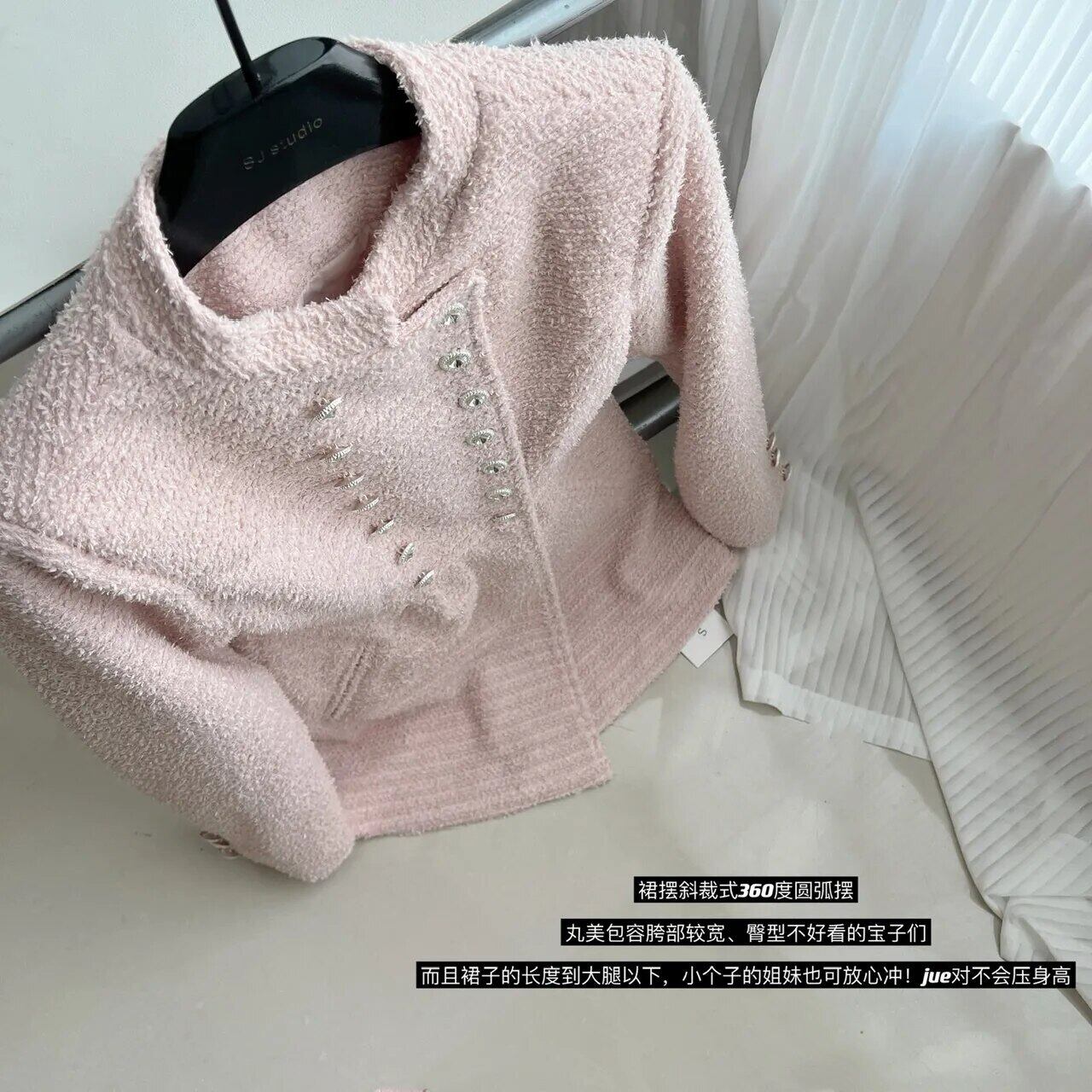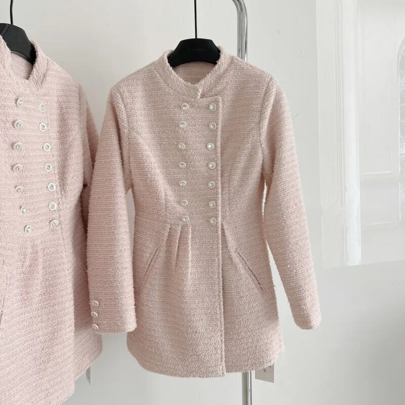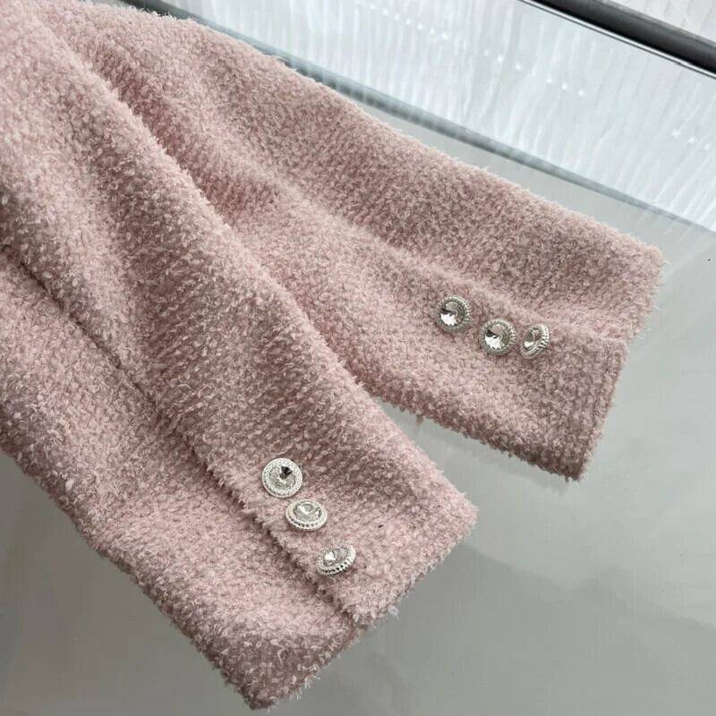 冬ウール & ブレンドコート高級ダイヤモンドボタンロングツイードコート甘い小さフレグランスアウター 大人ガーリー スウィート キュート カジュアル ウィンター 冬物
