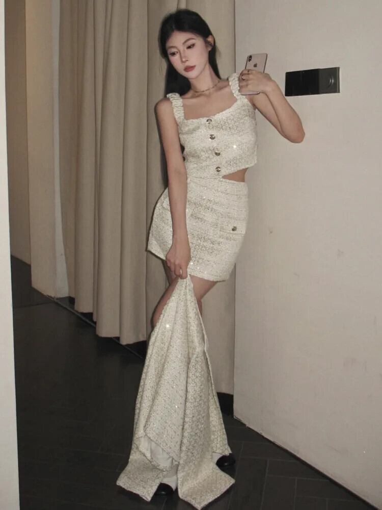 新着ツイード 3 点セット秋冬ジャケットコート + タンク + スカート衣装 ウィンター 冬物