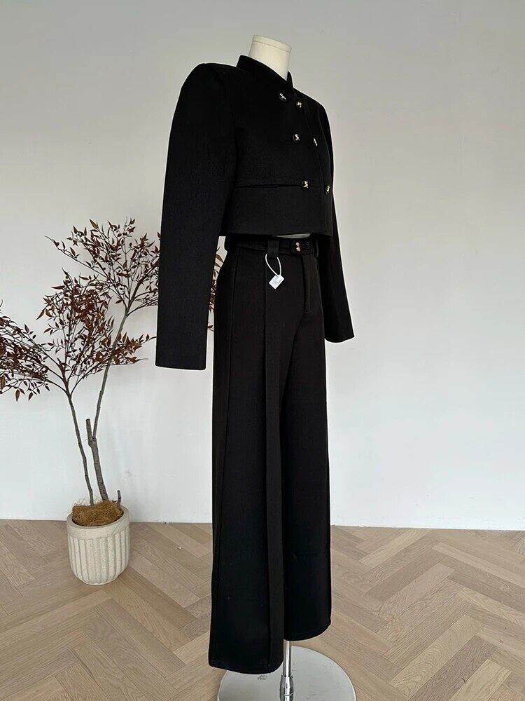 秋冬ツーピースセットショートコート+パンツセット2点衣装セットConjuntos Femininos オータム 秋物 ウィンター 冬物