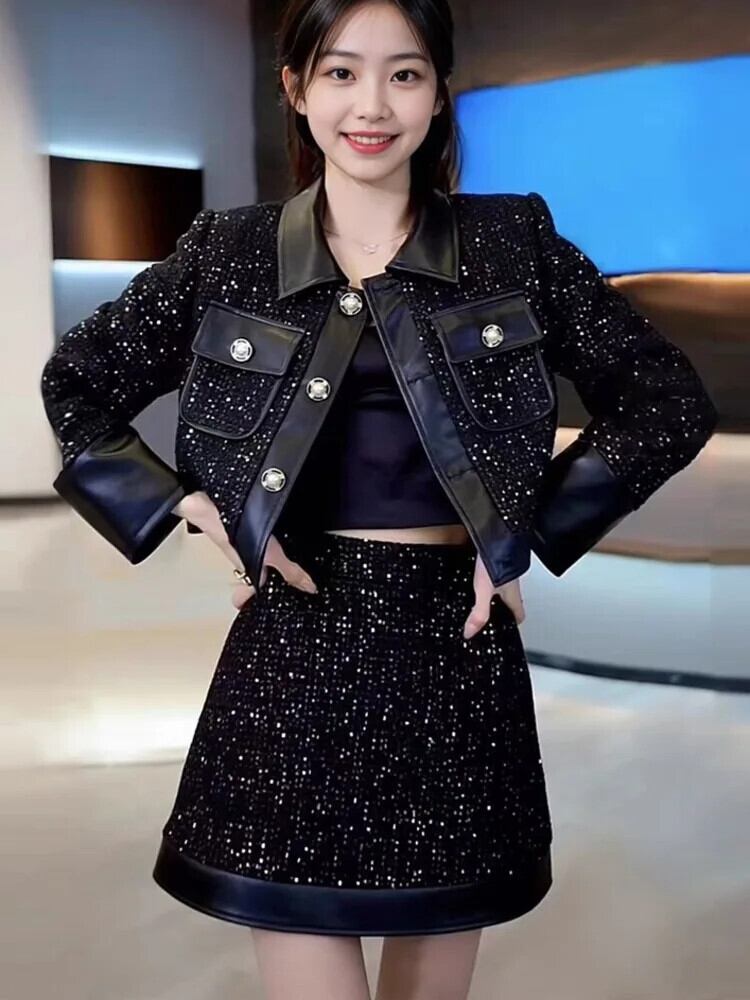 秋冬ツーピースセットショートジャケットコート+スカートセット2点セット衣装 オータム 秋物 ウィンター 冬物