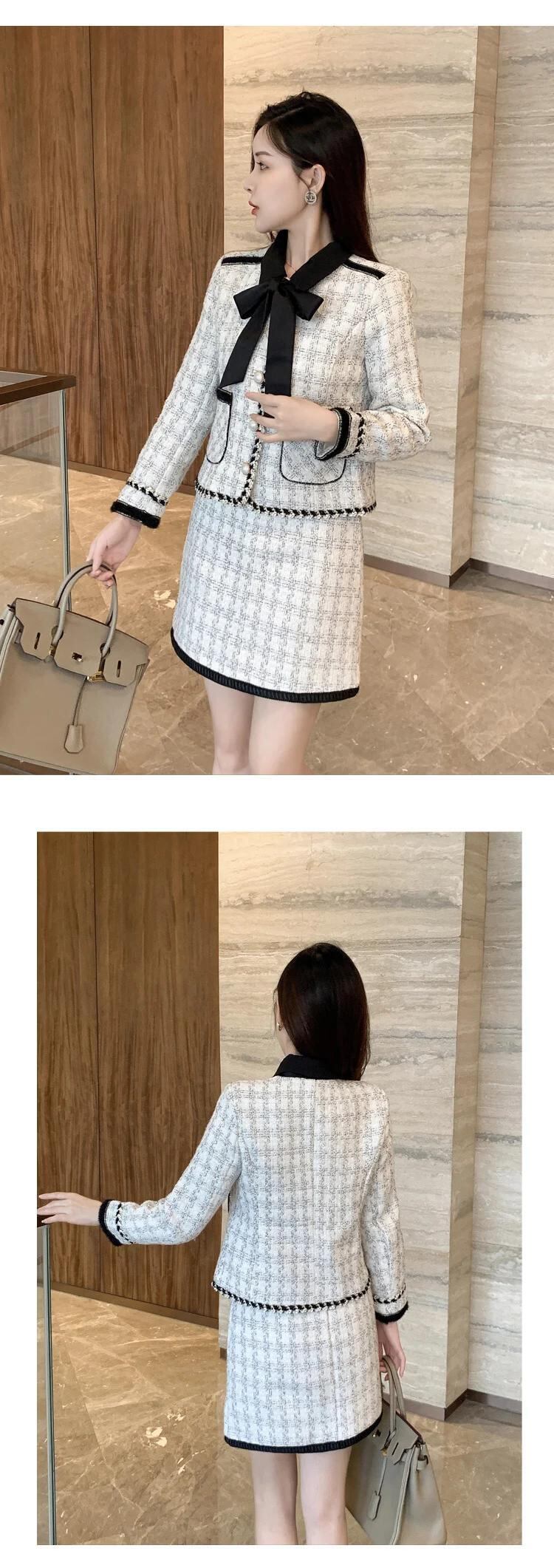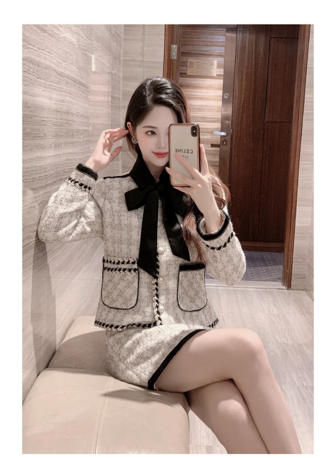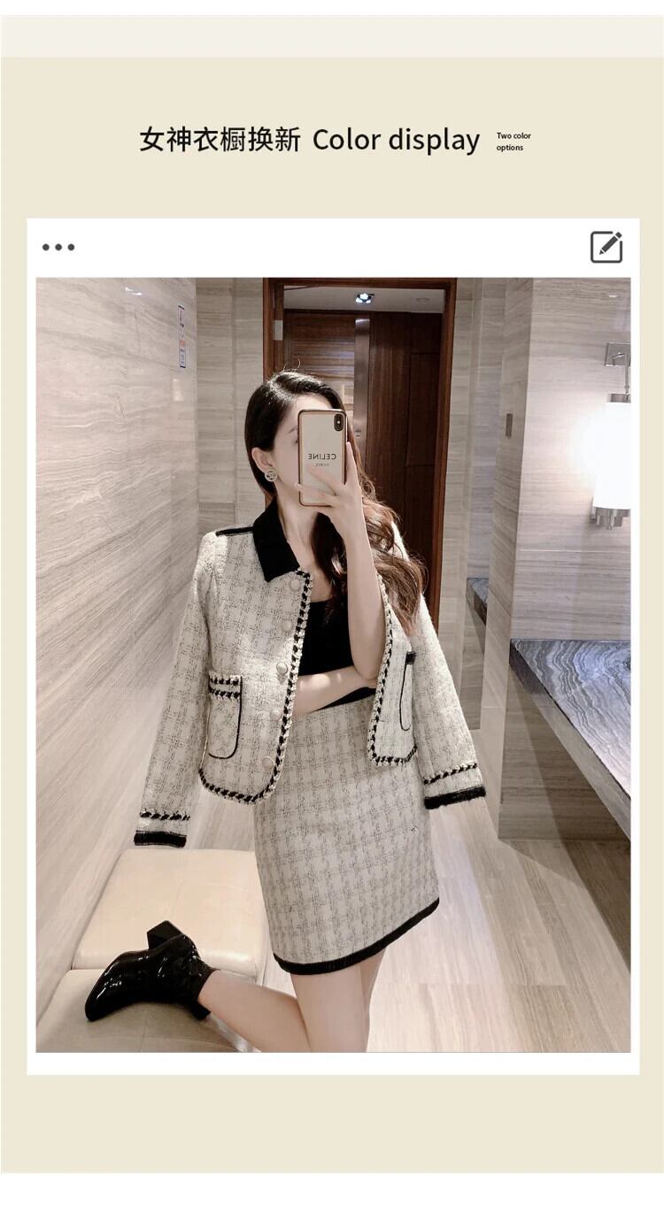 ストリートツイードツーピースセットウールジャケットコート+スカートスーツConjuntos Femininos 2ピース衣装
