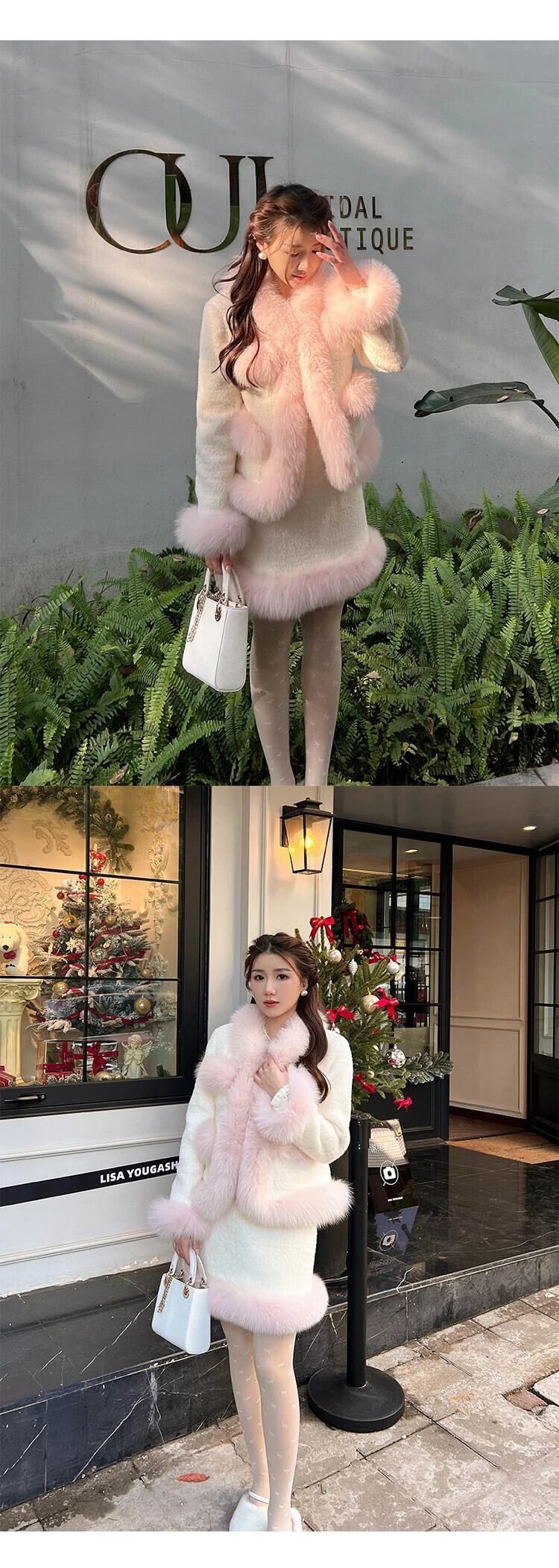 冬ぬいぐるみ厚く暖かいウール 2 点セットジャケットコート + スカートスーツガールスイート 2 ピース衣装 大人ガーリー スウィート キュート カジュアル ウィンター 冬物